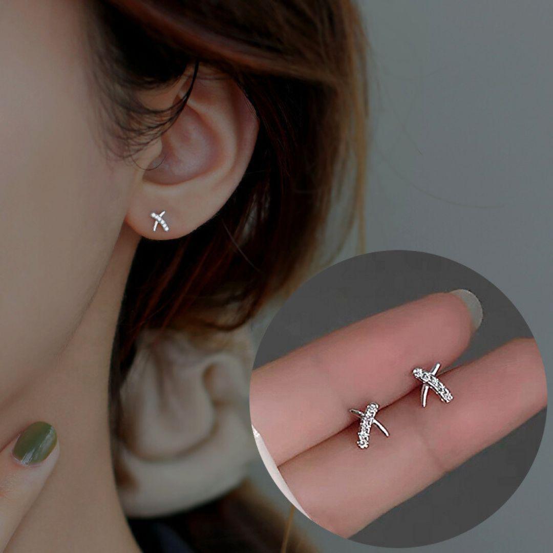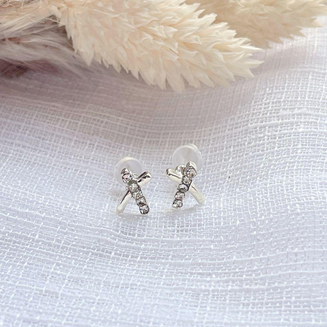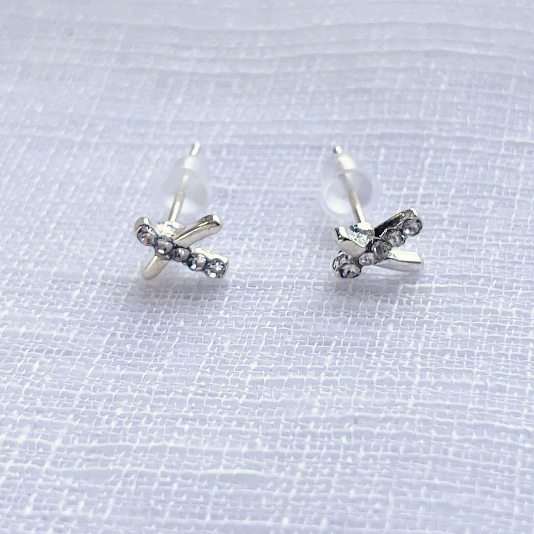 シルバー シンプル 小ぶり キラキラ クロス ピアス ※匿名配送