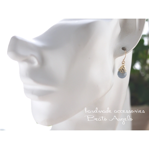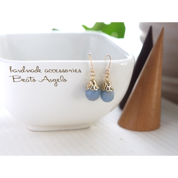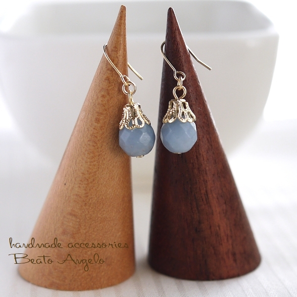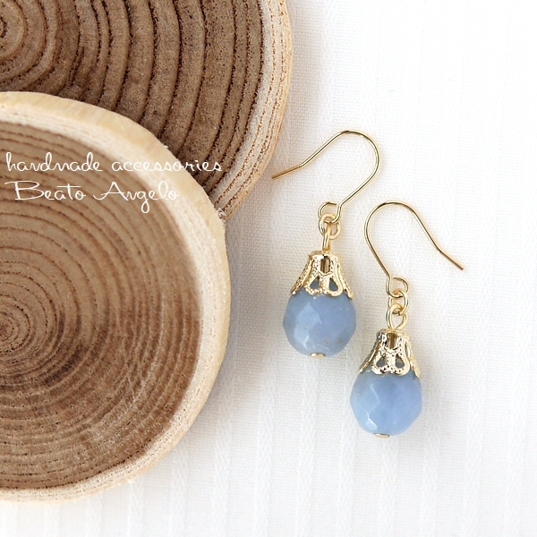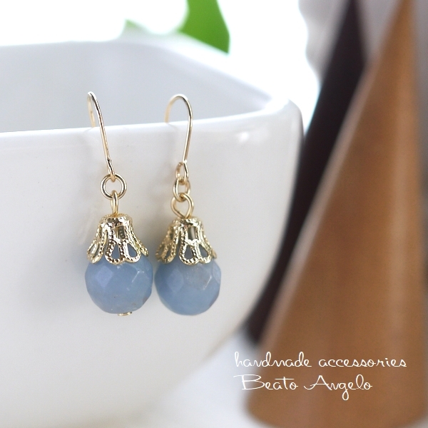 ◇◇+angelo+天然石エンジェライトのシンプルピアス(p-044)一粒 G 8mm チタン 樹脂 イヤリング可 c001 サックスブルー