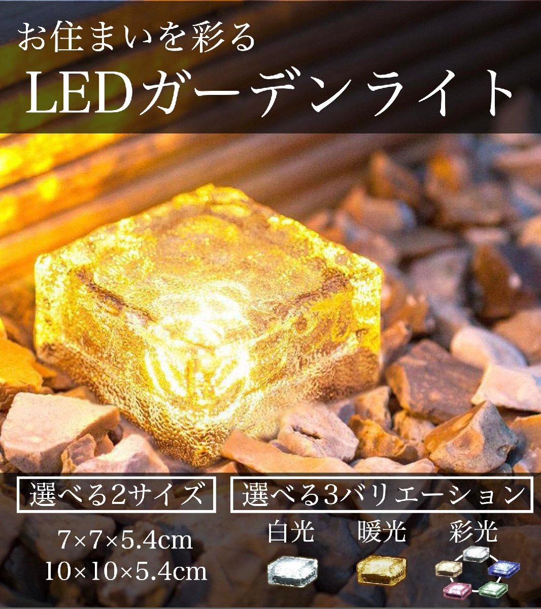 【幅広いシーンで使用!】お庭、歩道、芝生、ガレージ、玄関、ベランダポーチ、階段、エントランスなどの室外場所に幅広く使用頂けますその他にもテーブルに置いたり、お店の飾り、結婚式、学園祭、パーティー、キャンプ、バーベキュー、誕生日、ハロウィーン、クリスマスパーティーなどの屋外イベントの際にお庭や玄関先を華やか装飾してくれます!【サイズ】小/約7cm×7cm×5.4cm大/10cm×10cm×5.4cm 【バリエーション】3色 オレンジ/ホワイト/カラフル 【セット】4個セット/8個セット(※カラフルは小4セットのみ)