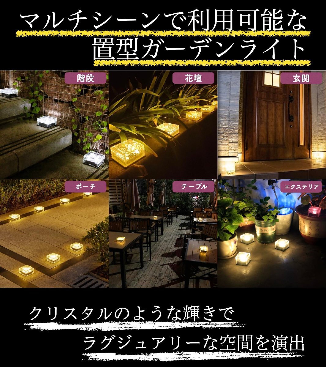 ブランド:SmileyLifeカラー:オレンジサイズ:大4個【幻想的な輝き】アイスクリスタルガラスのきらめきが美しく、お庭や玄関の景観灯としてワンランク上の柔らかな光独特で不規則な氷模様の結晶形、均一な配光、光が反射しキラキラと見えるおしゃれなデザイン!柔らかな光の屈折は、夜間に点灯すると暖かくロマンチックでリラックスした雰囲気を作り出し、疲れた体と心を癒します。お庭、歩道、芝生、駐車場、玄関などのさまざまな場面で使用可能です