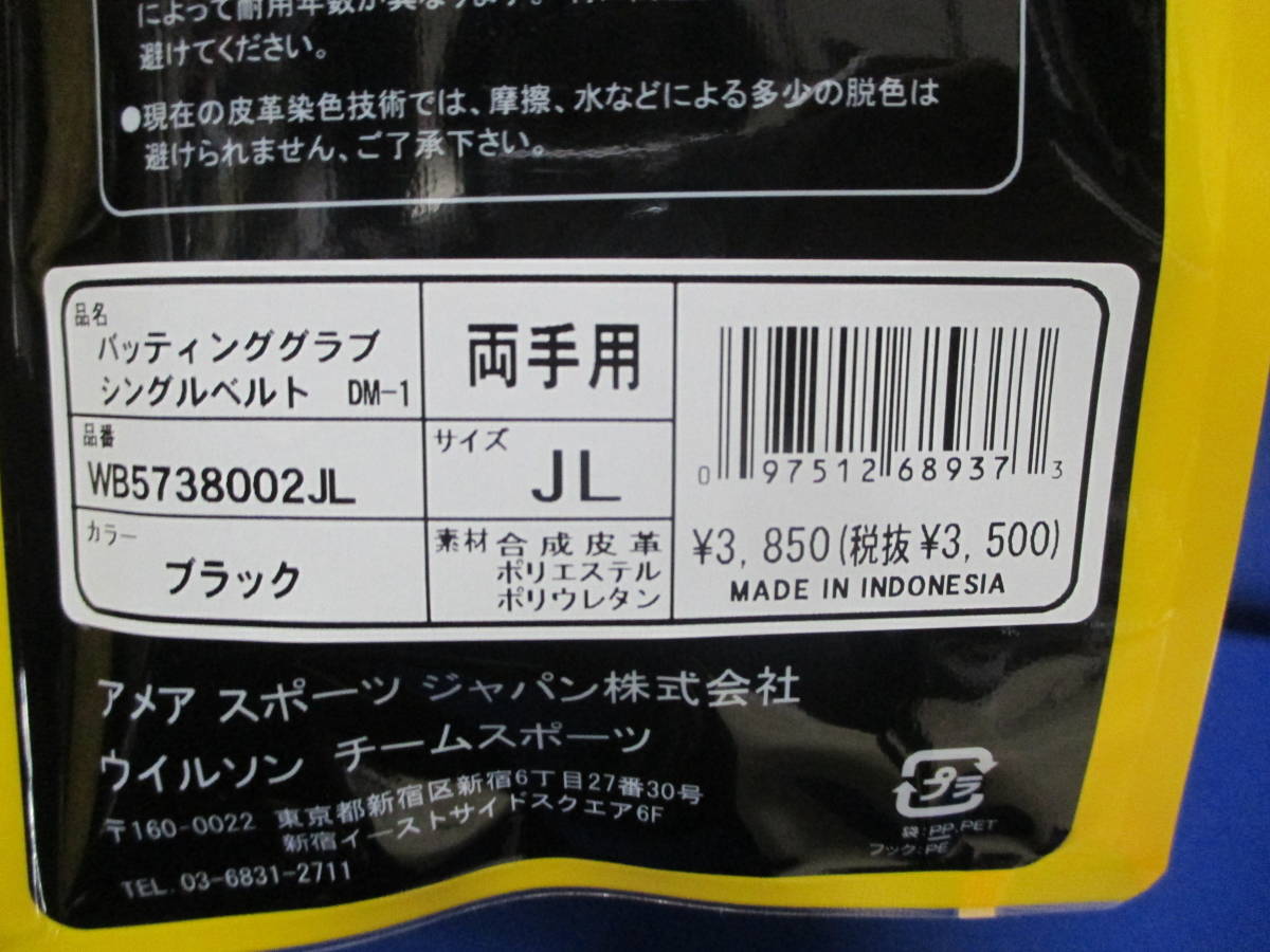 送料無料◆バッティング手袋◆黒◆JL◆ディマリニ◆即納◆洗える◆ウィルソン◆WB5738002◆野球◆ソフトボール◆受注限定サイズ