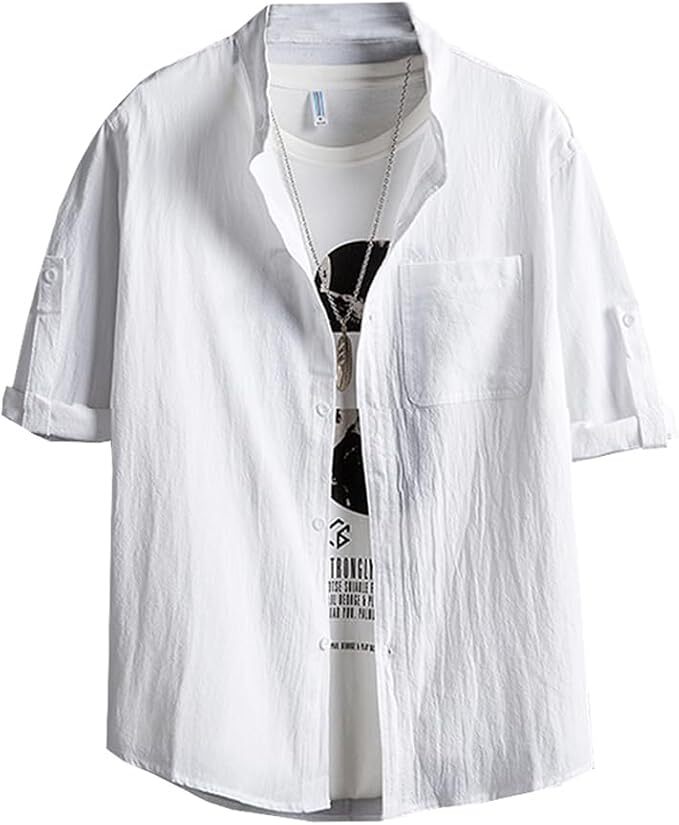 シャツ メンズ 七分袖 半袖 夏 2XL