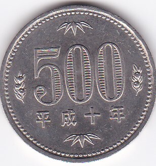 ◇500円白銅貨 平成10年★