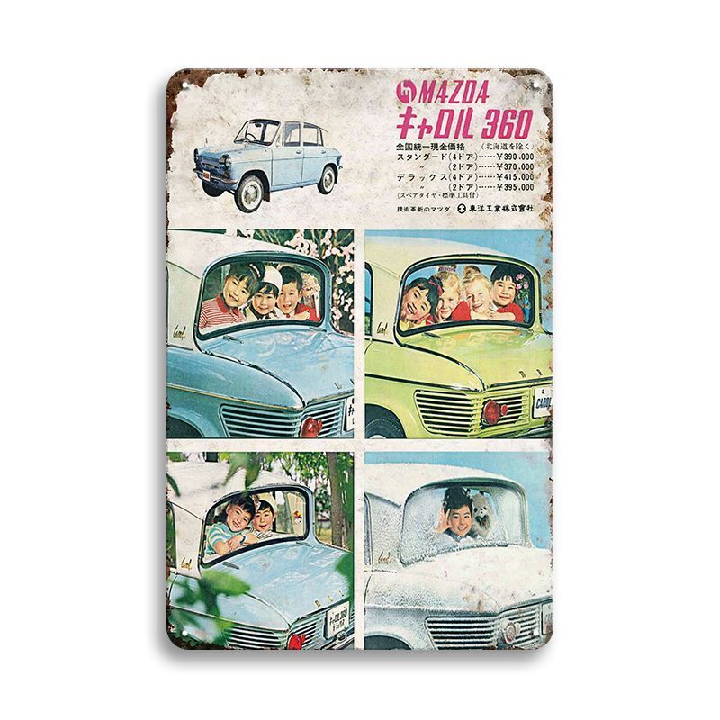 マツダ キャロル360の懐かしい広告デザインを使用したブリキ看板です。