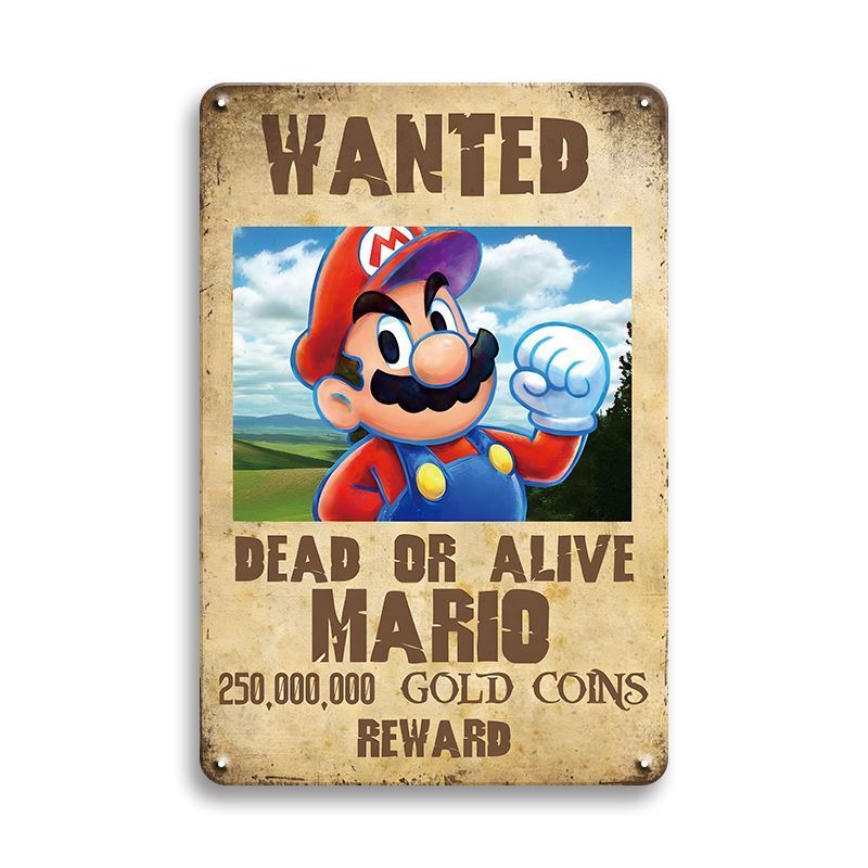 マリオをデザインしたWANTEDポスター風のブリキ看板です。