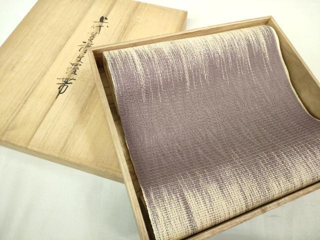 | 【正絹・未使用】 状態は一度も閉めておらず 特に目立ったシミ汚れなどもなく大変良い状態です。 西陣織屋老舗一覧によると、 「井関」「俵屋喜多川」「大庄」が400年以上の歴史とされています。 有職織物は古来中国から伝わり平安時代以降、 主に皇族や貴族たちが儀式や年中行事で使い、 その中で徐々に和様化され、現在では皇室、 伊勢神宮というもっとも日本的な歴史を持つ世界で生き続けています。 1960年(昭和35年)国指定 有職織物重要無形文化財(人間国宝)喜多川平朗 明治31年7月15日生まれ、京都西陣織の老舗俵屋の17代目。 正倉院裂などの古典染織の研究と復元につとめる。 昭和31年羅織で、35年有職織物で人間国宝。 重要無形文化財保持者(人間国宝)に「羅」・「有職織物」にて認定された 唐織の第一人者である喜多川平朗氏 大変上質な極上の逸品になります。 お安く出品致しますので、是非この機会にいかがでしょうか?