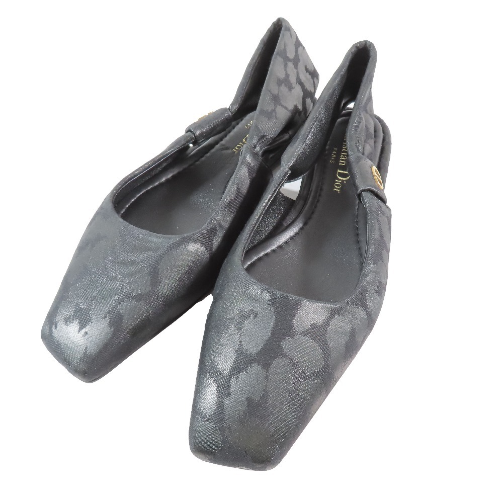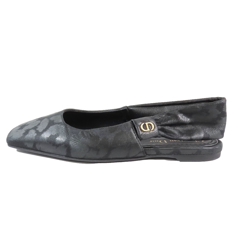 商品名:Christian Dior クリスチャンディオール MIZZA レオパード柄 フラットパンプス スリングバック 靴 シューズ 黒 35.5