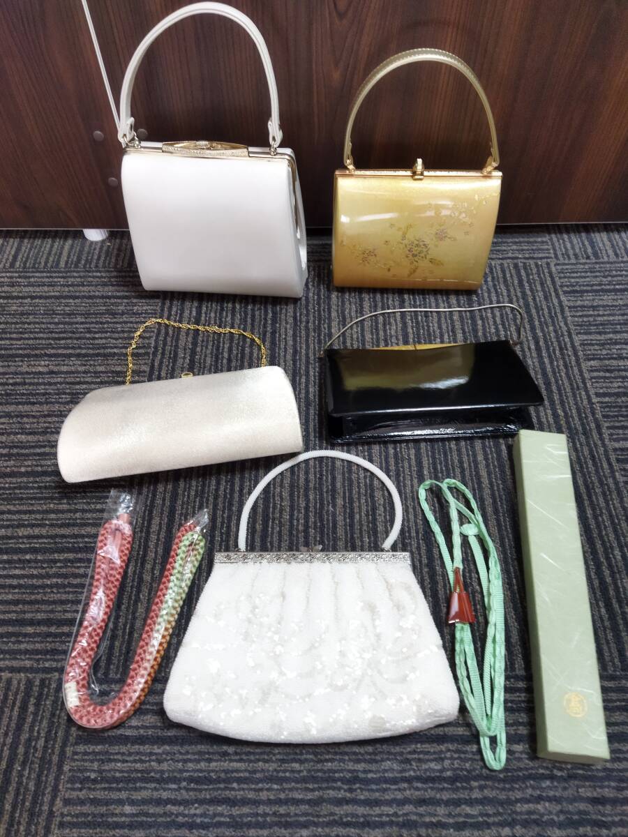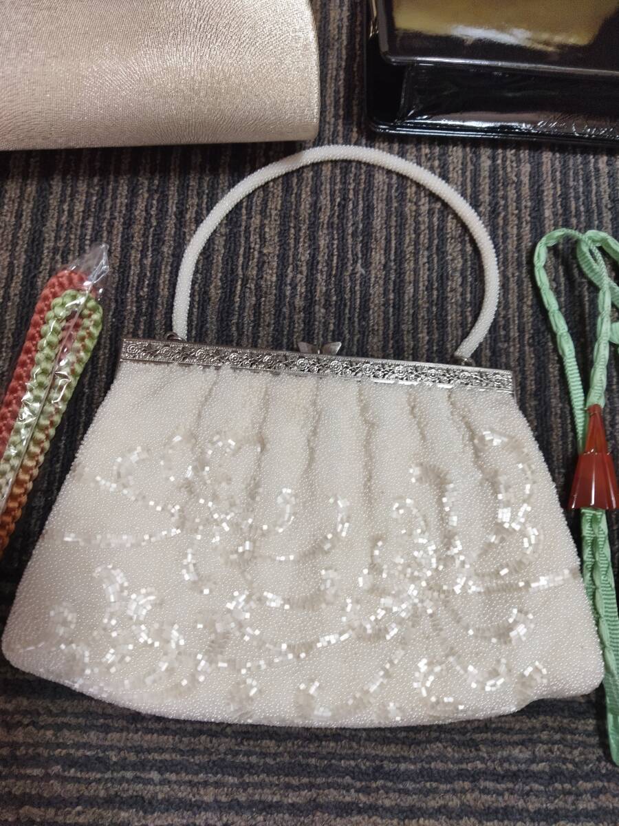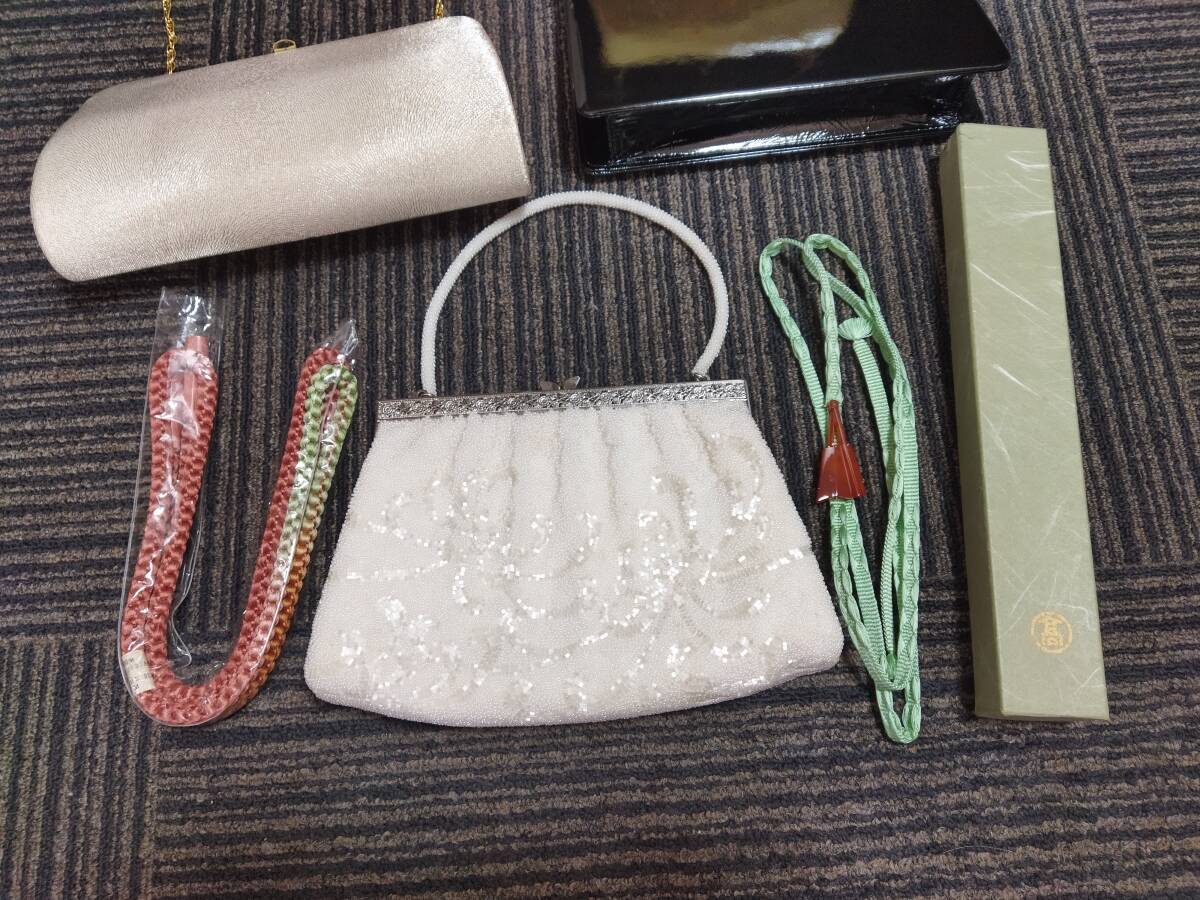 和装バッグ 5点 帯締めなど まとめ 和装小物 ビーズバッグ 帯締め べっ甲 クラッチバッグ ハンドバッグ がま口 ヴィンテージ レトロ 中古品