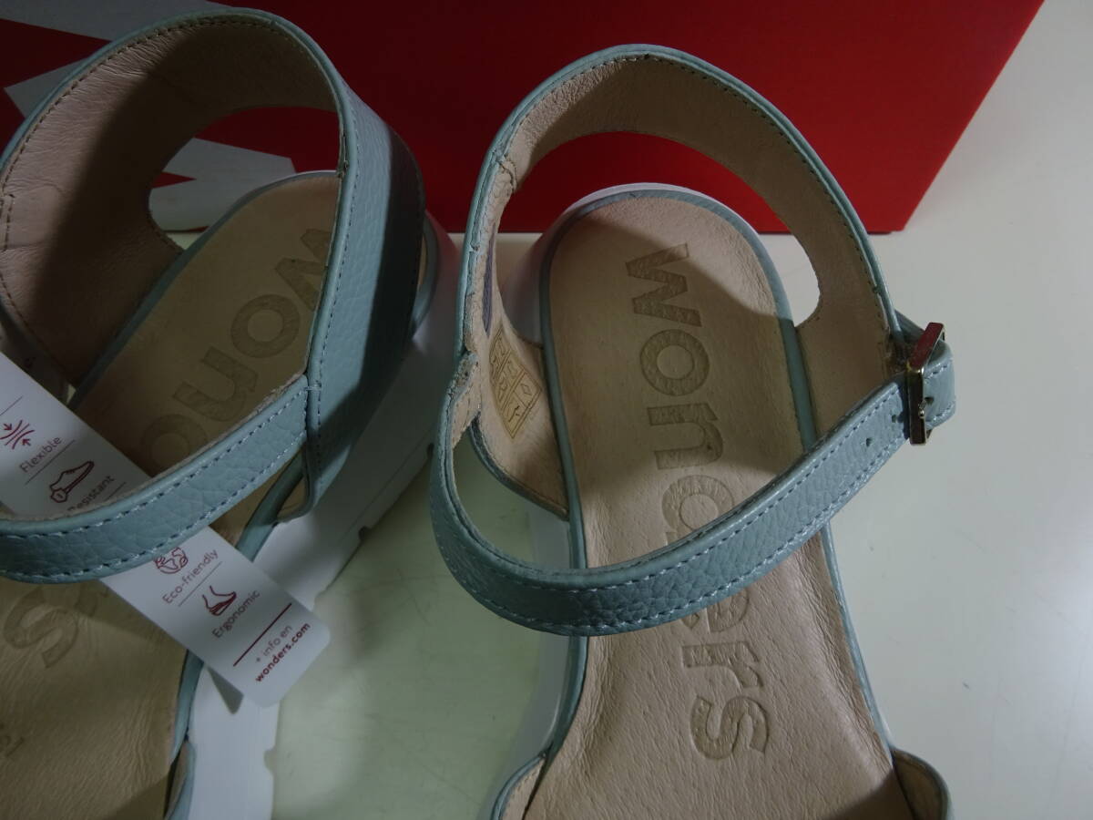 wonders レディース 厚底コンフォートサンダル 未使用品 商品説明 ●サイズ38 日本サイズ24cm ●ヒールの高さ約3cm〜4cm ●ワイズ幅約10.5cm ●お色 水色系/シボ革 ●状態 未使用、新品 ●箱あり コメントが御座いますとお気軽にお問い合わせ下さいね、 宜しくお願い致します。