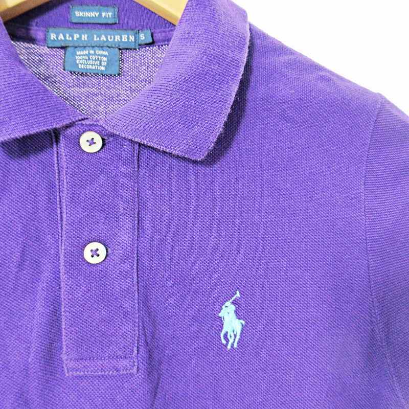 ラルフローレン RALPH LAUREN スキニーポロ ポロシャツ カットソー 半袖 ロゴ刺繍 S 紫 0724 ■MET1 レディース