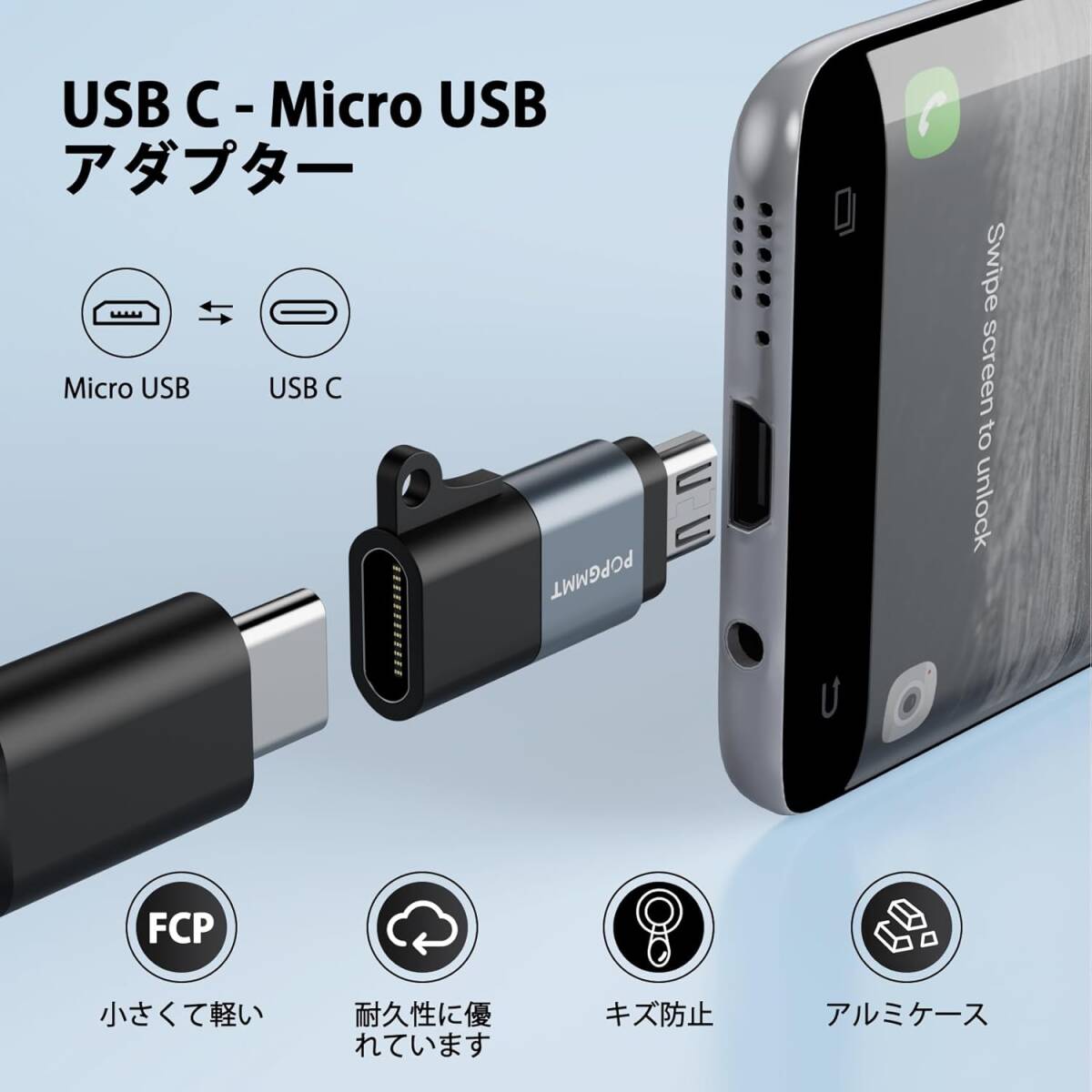 • 【耐久性抜群】充電中の安全性&安定性を確保するために、マイクロ USB 変換コネクタインターフェースに56kΩ抵抗レジスタを内蔵し、充電やデータ転送中の安全を確保出来ます。POPGMMTマイクロ usb タイプc 変換はアルミニウム合金にニッケルめっきされており耐熱・耐腐食性に優れているだけでなく20000回の抜き挿し試験をクリアしていますので安心してお使いいただけます。精密なコネクタにより、スムーズに抜き差すことが可能です。インターフェースは平らで、ぴったりとフィットし、緩みません。自宅、職場、旅行などいろんな場所で大活躍しています。