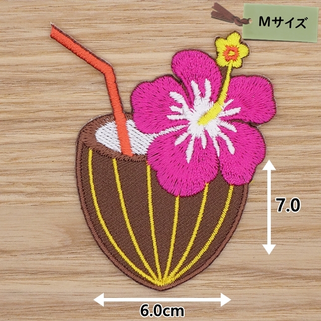 アイロンワッペン (ココナツジュース ピンク)(Mサイズ)