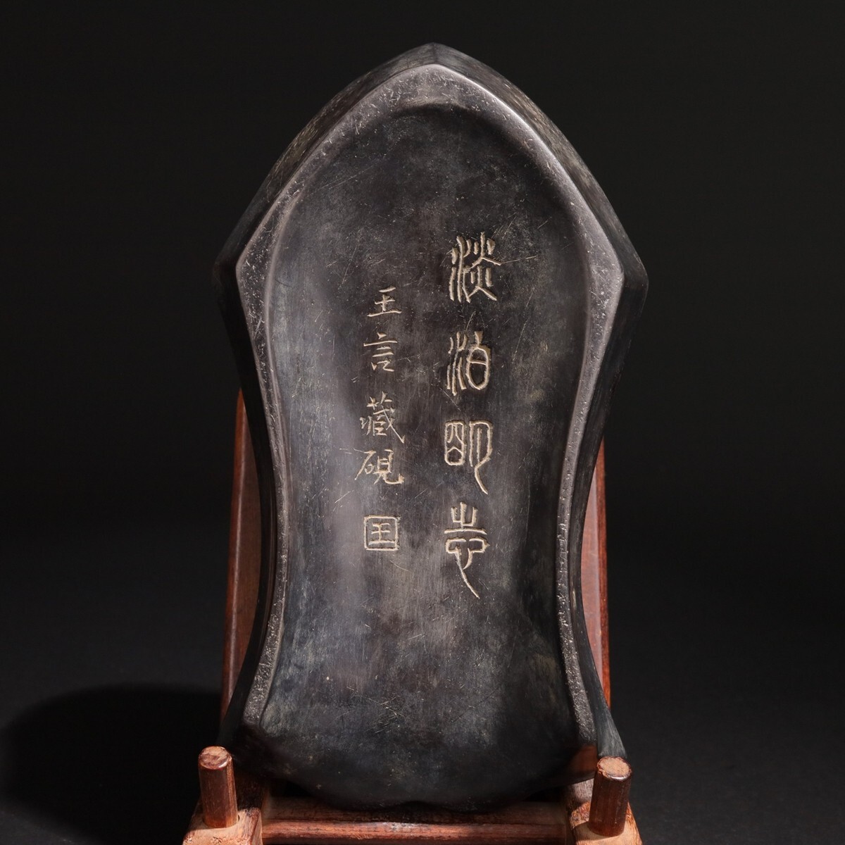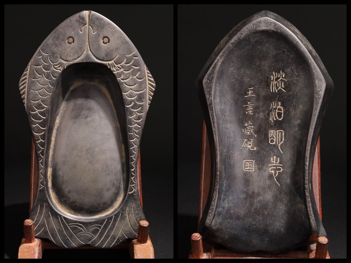 「古歙石硯 富貴有余文房抄手硯 王言銘 清時代」手彫り 文房四宝 書道具 中国古美術 旧蔵出
