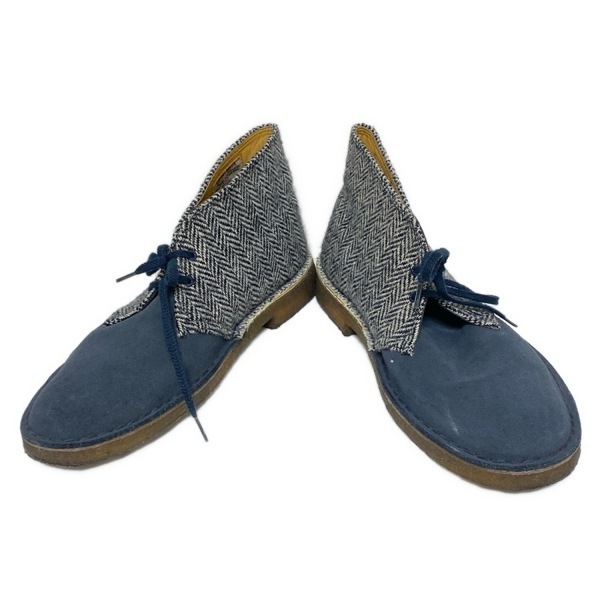 クラークス Clarks ショートブーツ GB 8 1/2 - ネイビー×白 メンズ HarrisTweedコラボ 靴