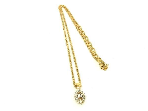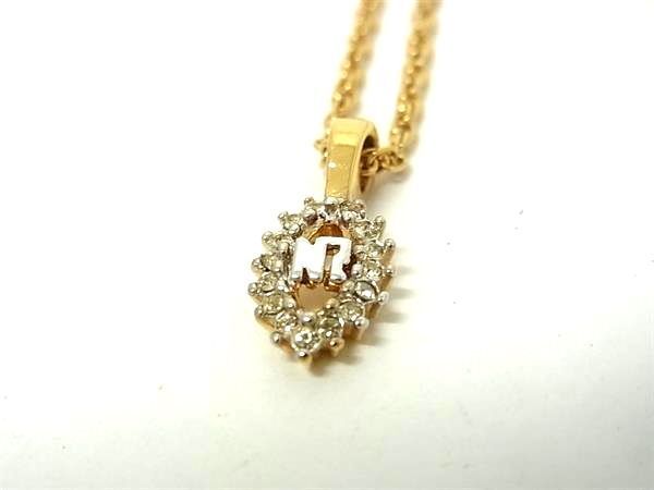 ■美品■ NINA RICCI ニナリッチ ロゴモチーフ ラインストーン ネックレス ペンダント アクセサリー ゴールド系×シルバー系 DF7389