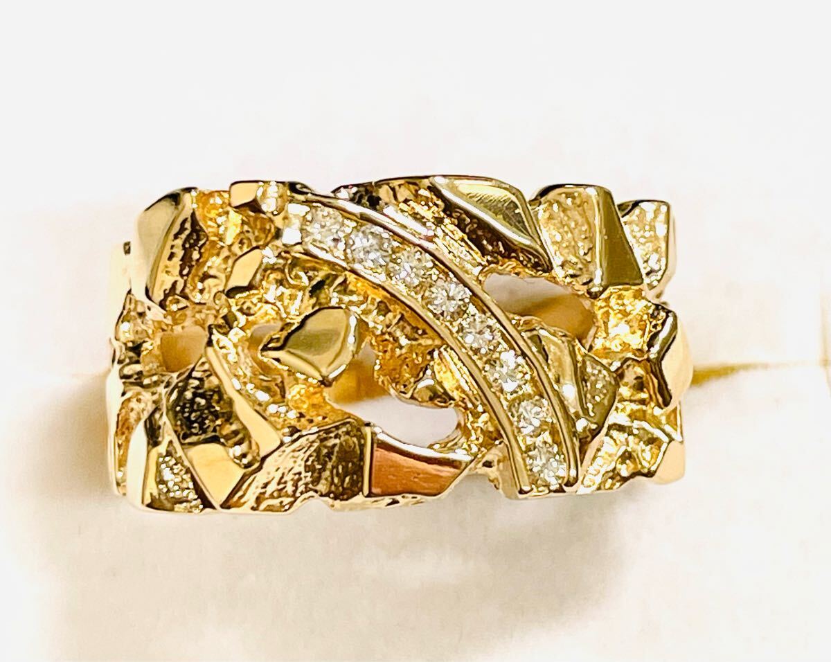 こちらは、K14台にダイヤ8石付き メンズリングです。