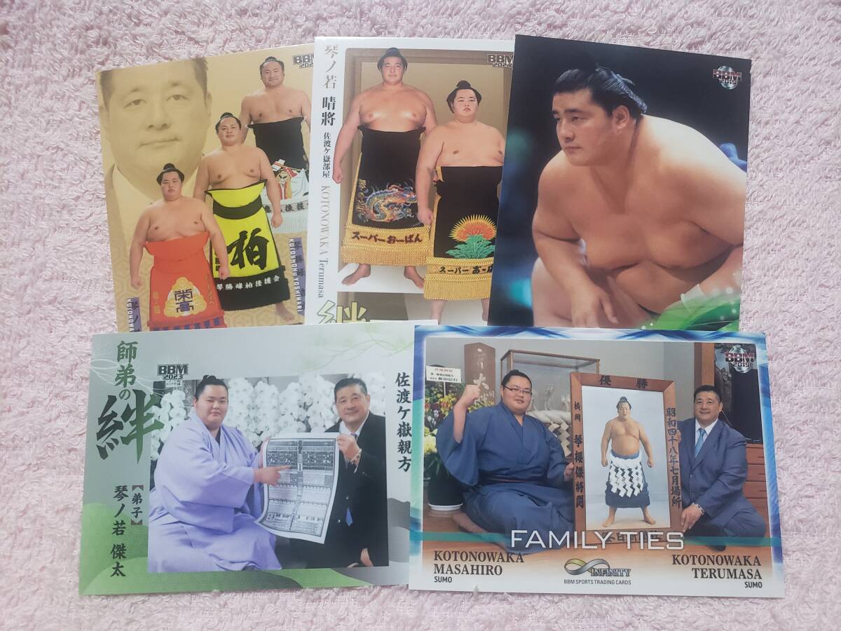 ベースボールマガジン社(BBM社)より発売された「大相撲カード」、「インフィニティ」に封入されておりました琴ノ若晴將関のレギュラーカード5枚セットになります。
