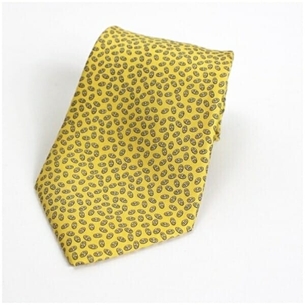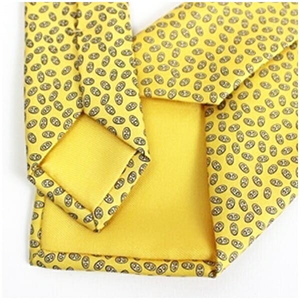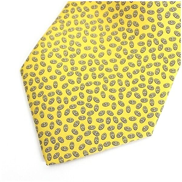 さらりとした手触りのシルクネクタイです。上品なイエローに、シェーヌダンクルが並んだエルメスらしいデザインです。