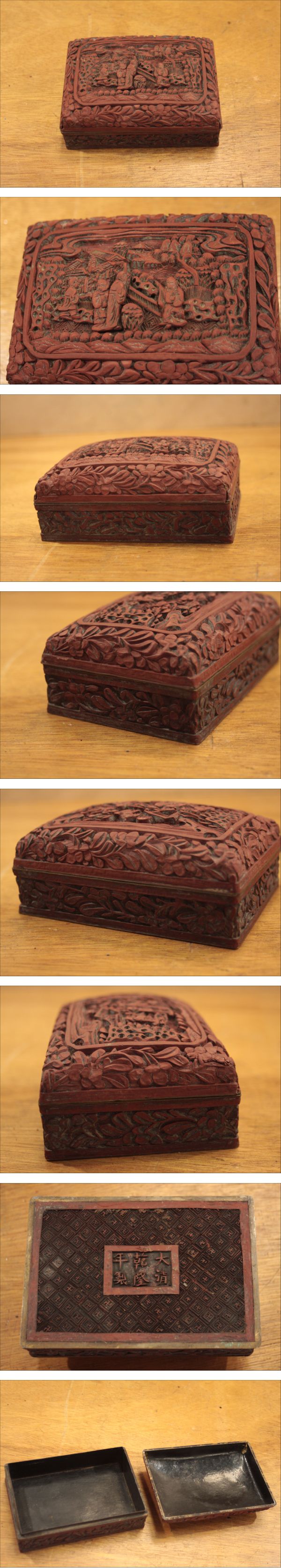 | ∇382 中国古美術 文箱 彫刻 小箱 大清乾隆年製 | ||