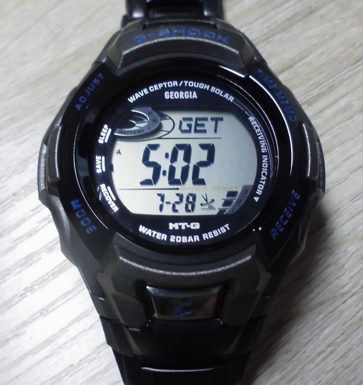 缶コーヒーで有名なジョージア限定のGショック MTG-900IDJGRG-1AJF! ガンメタリックとブラックのフェイスにブルーのロゴが格好いいです。人気の電波ソーラーモデルでベルトはブラックメタルバンドです!!!ライトを点灯させるとコーヒーカップのシルエットが浮かび上がります(写真参照)裏蓋に「enjoy GEORGIA」の刻印があります。 中古品ですが状態は良いです。写真の時計だけの出品です。2次充電池交換済み。腕周りは18cmぐらいです(素人採寸ですので多少の誤差はご了承ください)1枚目の写真を見てもらうとわかると思いますが、GET表示されていますので電波受信OKです。写真撮影時はバッテリーがフル充電の状態で、ライトが点灯し動作中です。中古なのでコキズはありますが良い状態です。生産終了限定モデル。非売品。 |