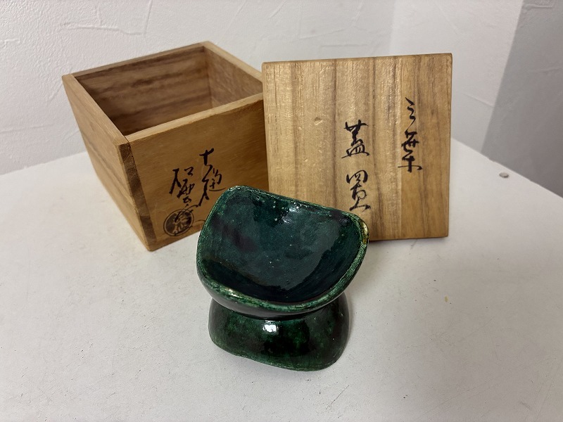 三葉 蓋置 大樋 松雲窯 泉喜仙造 共箱ありです。