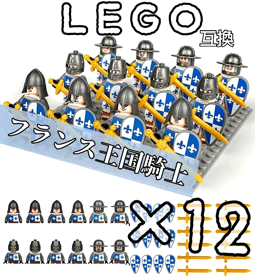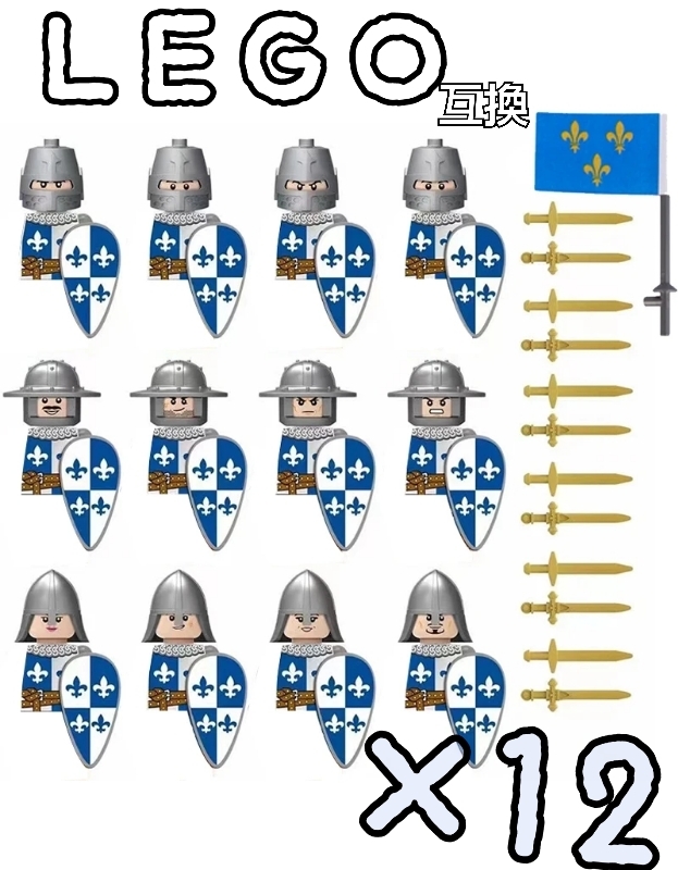 フランス王国騎士 ミニフィグ 12体 LEGO互換 匿名配送 レゴ武器 お城 中世ヨーロッパ 盾 旗 剣 フランク王国 送料無料