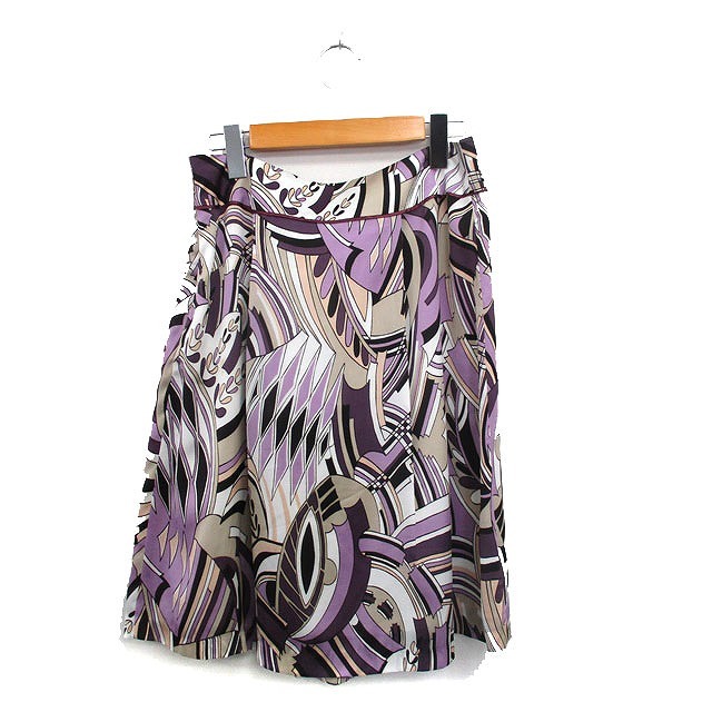 トラサルディ TRUSSARDI フレア スカート ミニ 総柄 38 パープル 紫 /KT29 レディース