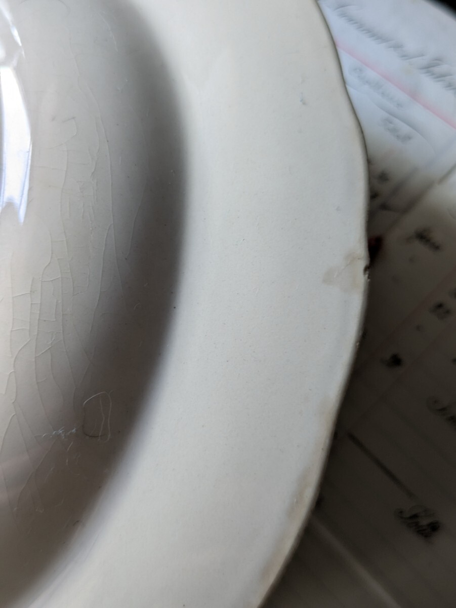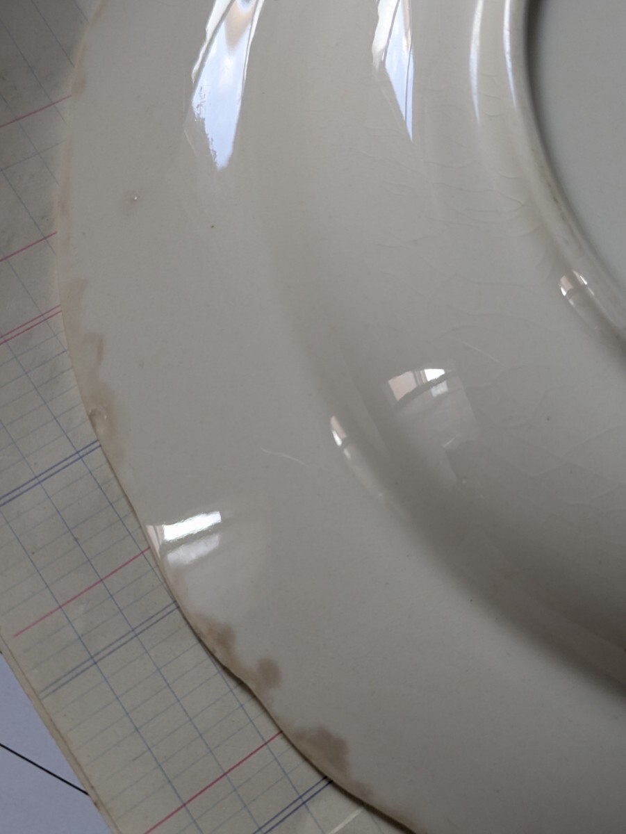 ところどころシミがございますので画像にてご確認ください。他、経年による釉薬への貫入がみられますが特筆するダメージはなく使用感もあまり見られず十分普段使いしていただけるとおもいます。ご購入に際しましてはあくまでも中古品とご理解いただき少しでも気になる方は入札をお控えください。
