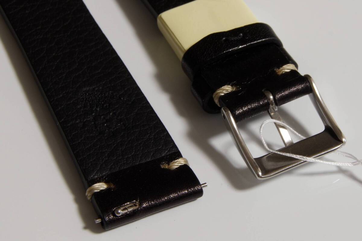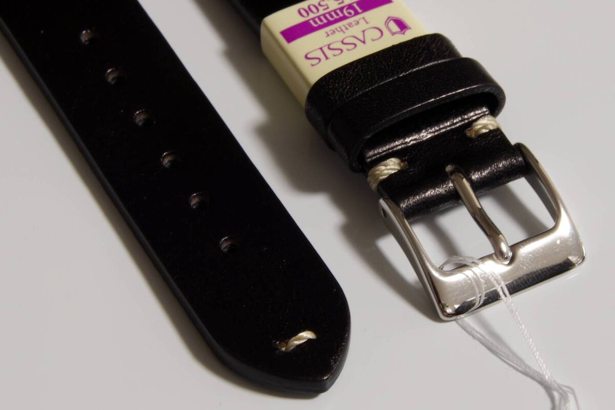 ヴィンテージ感のあるカーフを使用したモデル。 色むら・革傷等がよりヴィンテージ感を醸し出しています。 付け根にかがり縫いと剣先のステッチがアクセントになっています。 裏材には水・汗に強い合成皮革「LORICA(ロリカ)」を使用しております。 商品の詳細 商品名CASSIS GRENOBLE(グルノーブル) 19mm Black(019) 希望小売価格\5,500 材質カーフ皮革 金色/ステンレス尾錠(ご希望色にて) サイズ ラグ幅 19mm 尾錠幅 16mm 長さは剣先側 115mm 尾錠側 75mm(尾錠含まず) 厚み約3mm カシスDバックル装着は可能です。 重量9g 発送の詳細 送料は当方で負担いたします。 匿名配送のネコポスでお送りいたします。 |