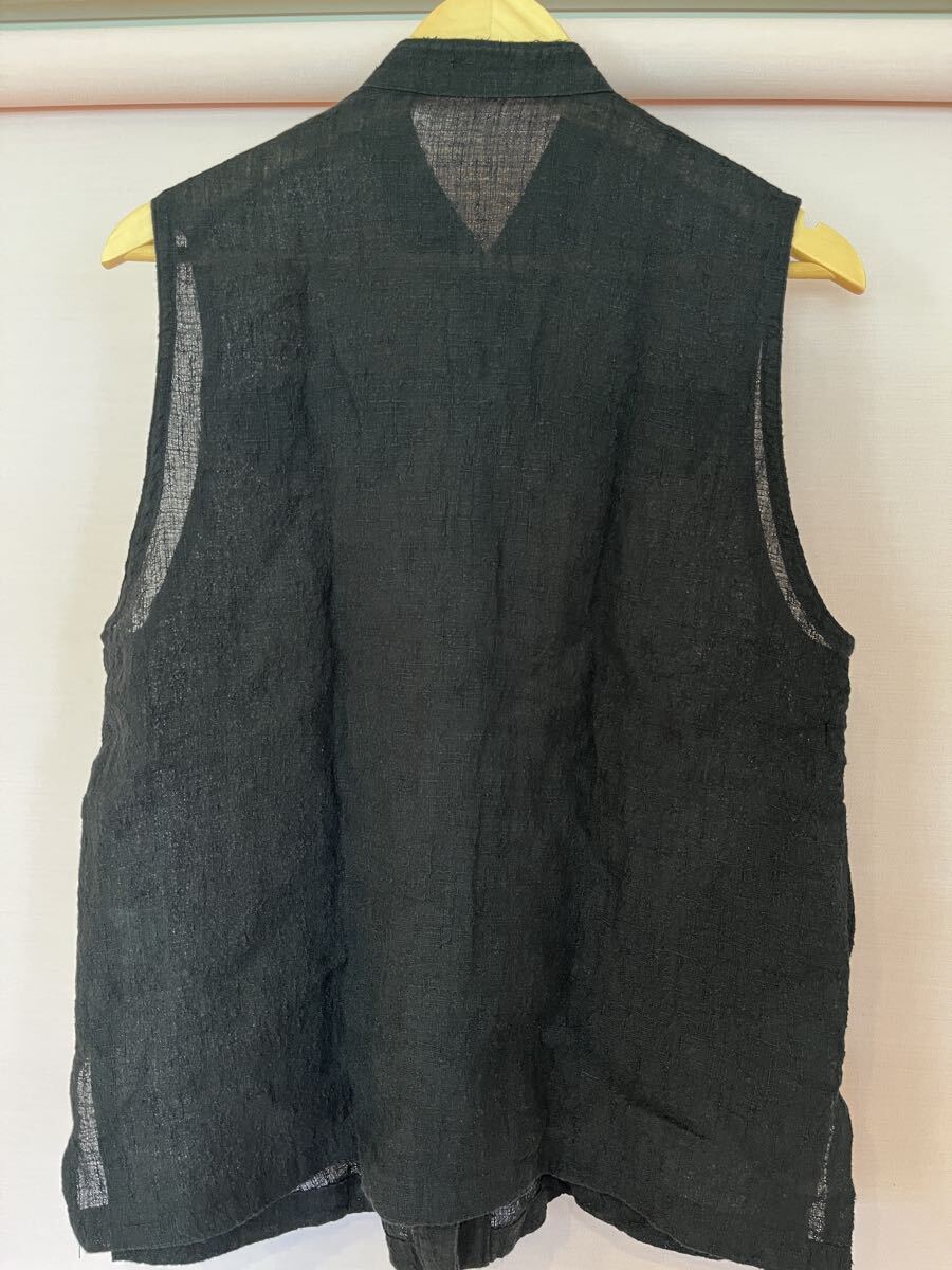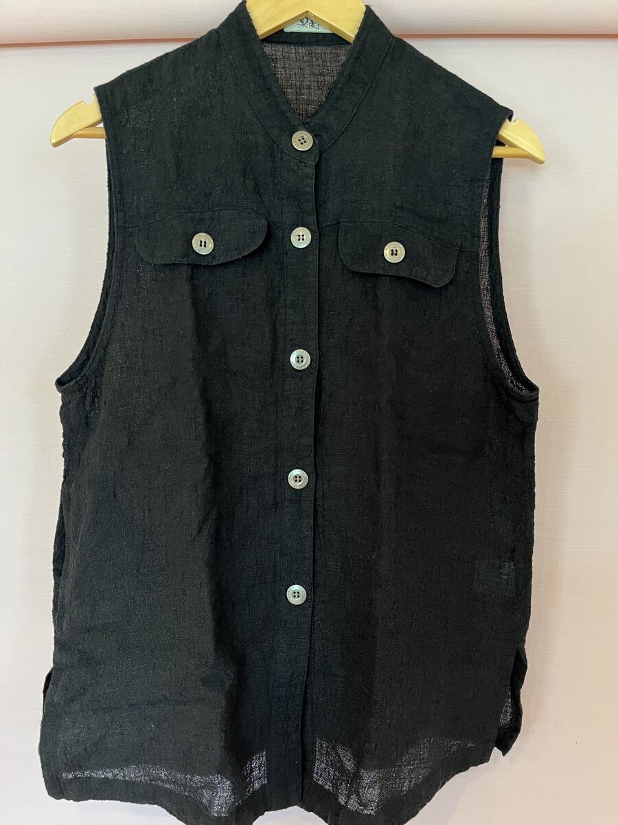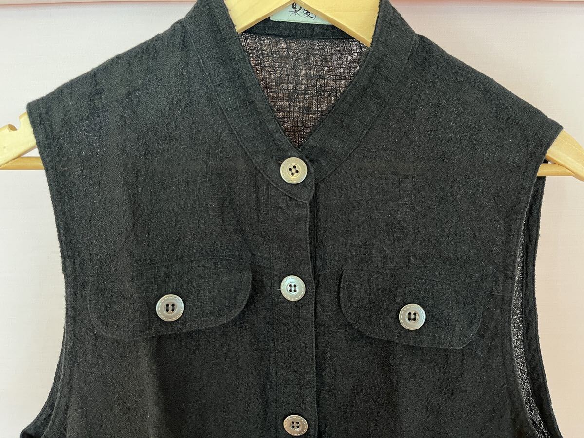 麻 Mサイズ 黒 ノースリーブ トップス レディース ベスト 袖なし 無地