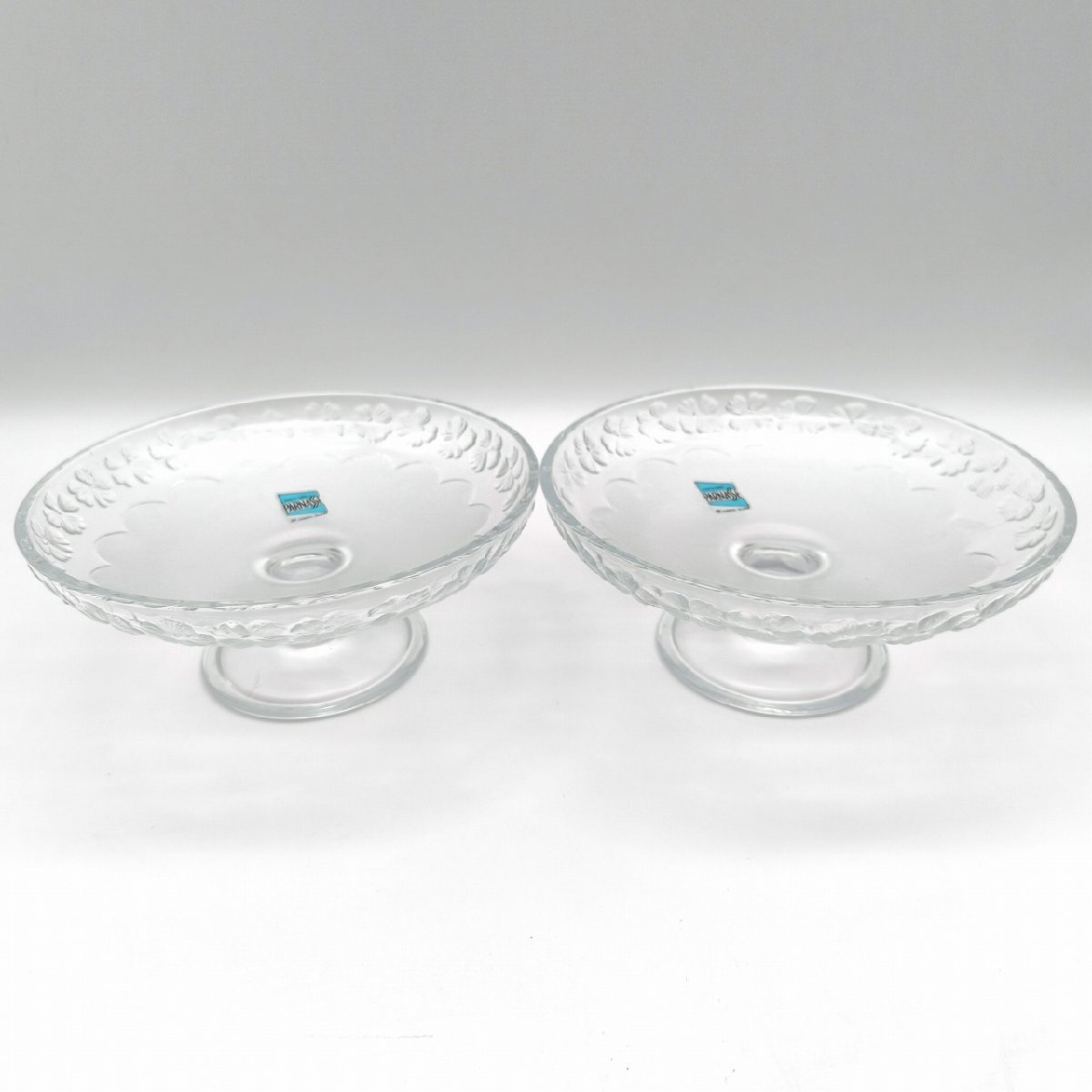 器サイズ(直径×高さ):約170×73㎜、ペアセット、状態ランク:B 商品は画像に写っているものが全てです。ガラス器に目立つキズやヨゴレはありません。外箱には経年劣化が見受けられます。その他状態は画像をご確認ください。※器の中心にうっすらと線が入っていますが、ヒビではなくガラスの繋ぎ目です。