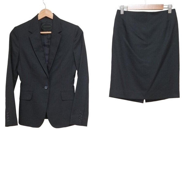 アンタイトル UNTITLED スカートスーツ - 黒×ダークグレー レディース ストライプ/肩パッド レディーススーツ
