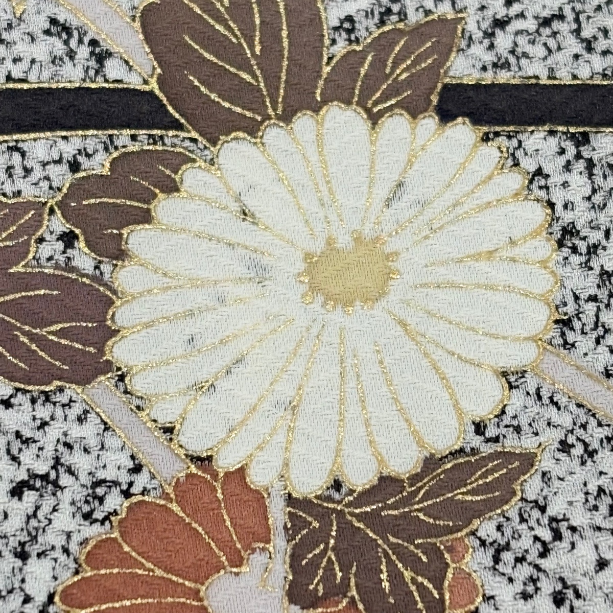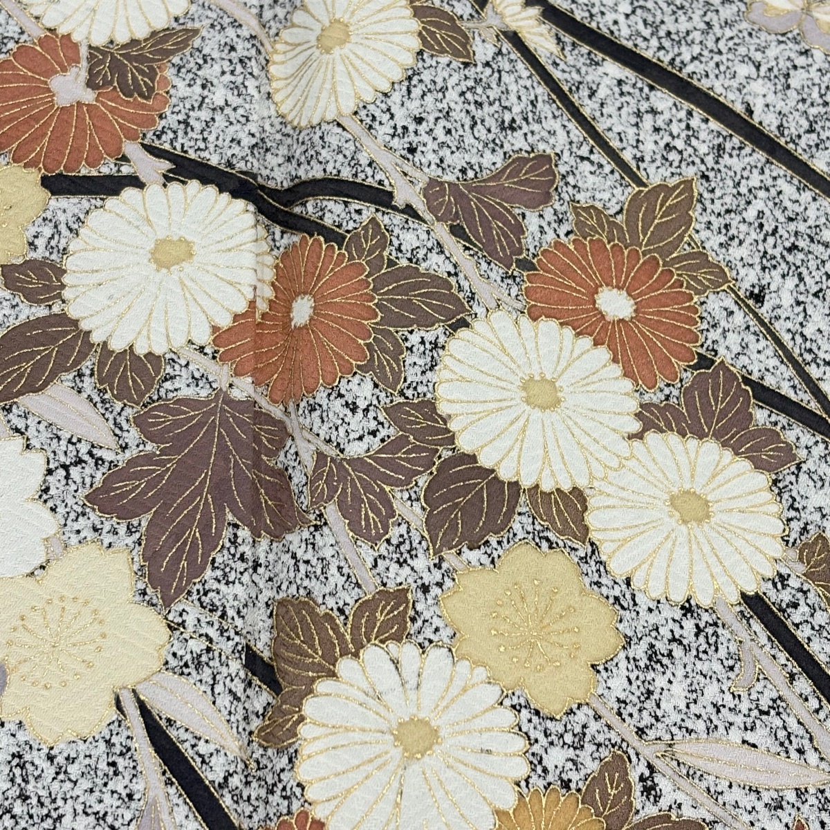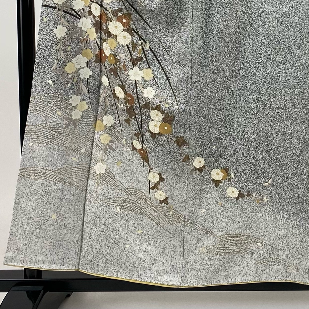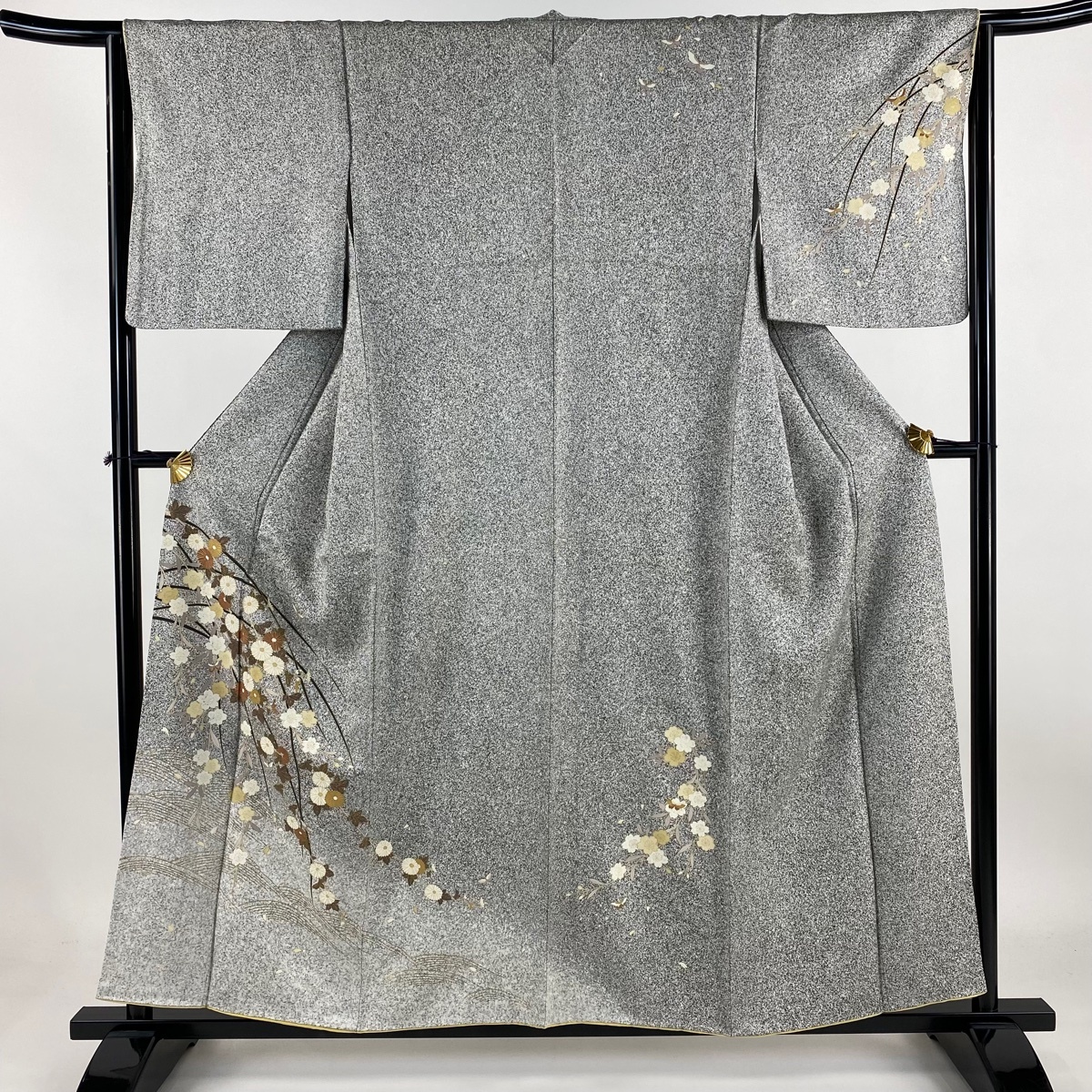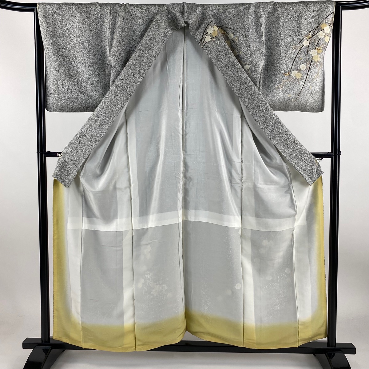 | 付下げ 秀品 菊 桜 金彩 ぼかし 灰色 袷 身丈156 裄丈64.5 M 正絹 【中古】 |