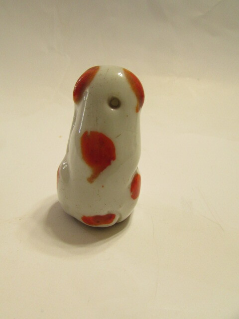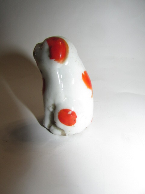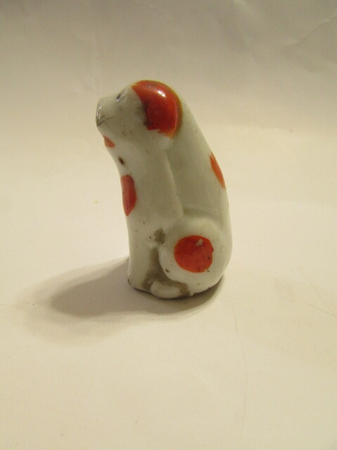 ( 会津若松・旧家・蔵出し) 明治時代 ( 小さな磁器人形・子犬の色絵水滴人形 )貴重・珍品