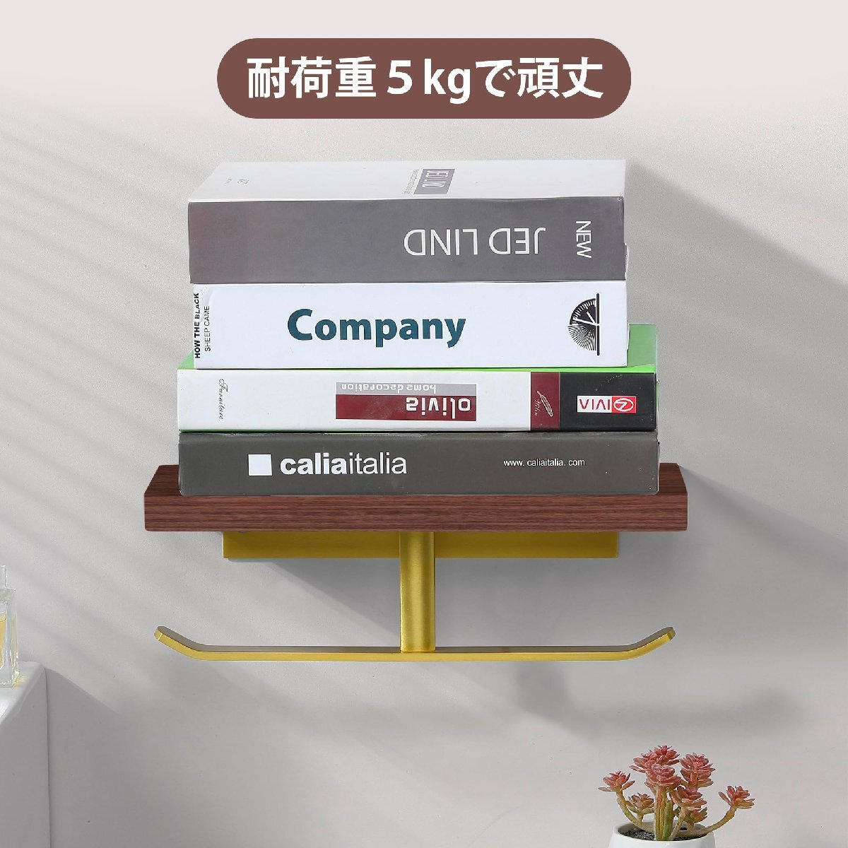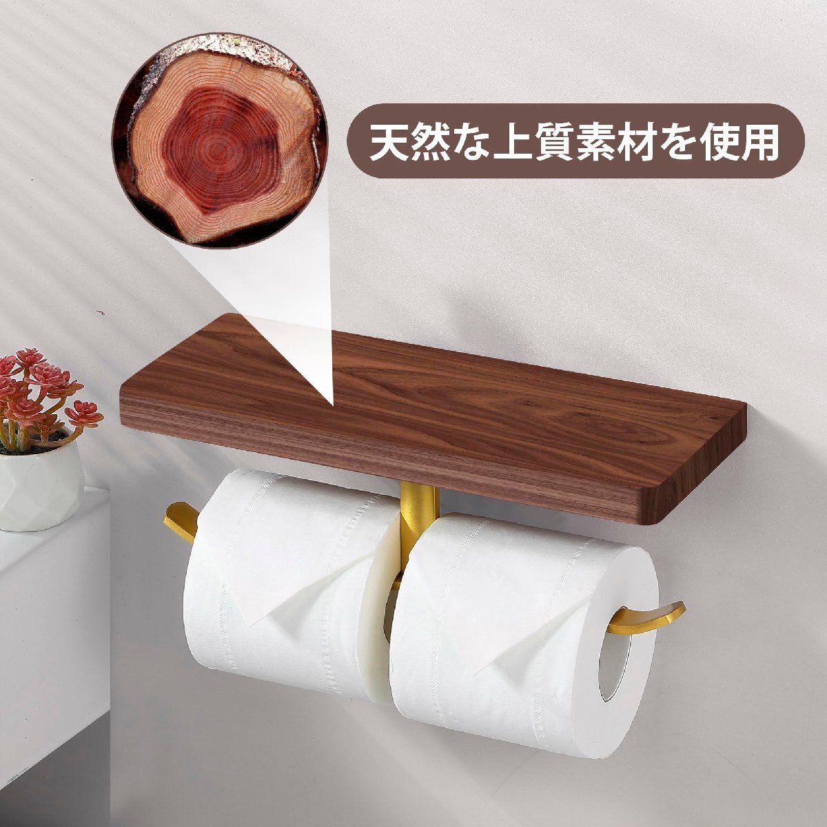 【おしゃれなデザイン】FOMANSHのトイレットペーパーホルダーは、シンプルデザインを採用して、オシャレな上質空間をお作りいただけます。金色の真鍮の棚を組み合わせ、ウォールナットの高級感をさらに際立たせています。