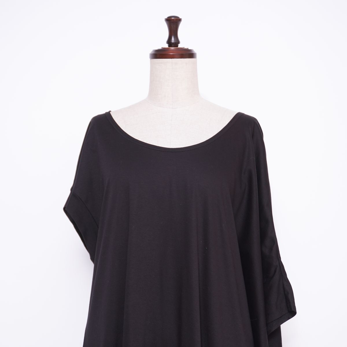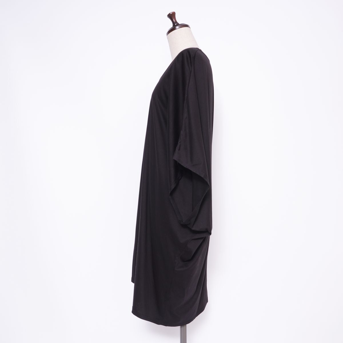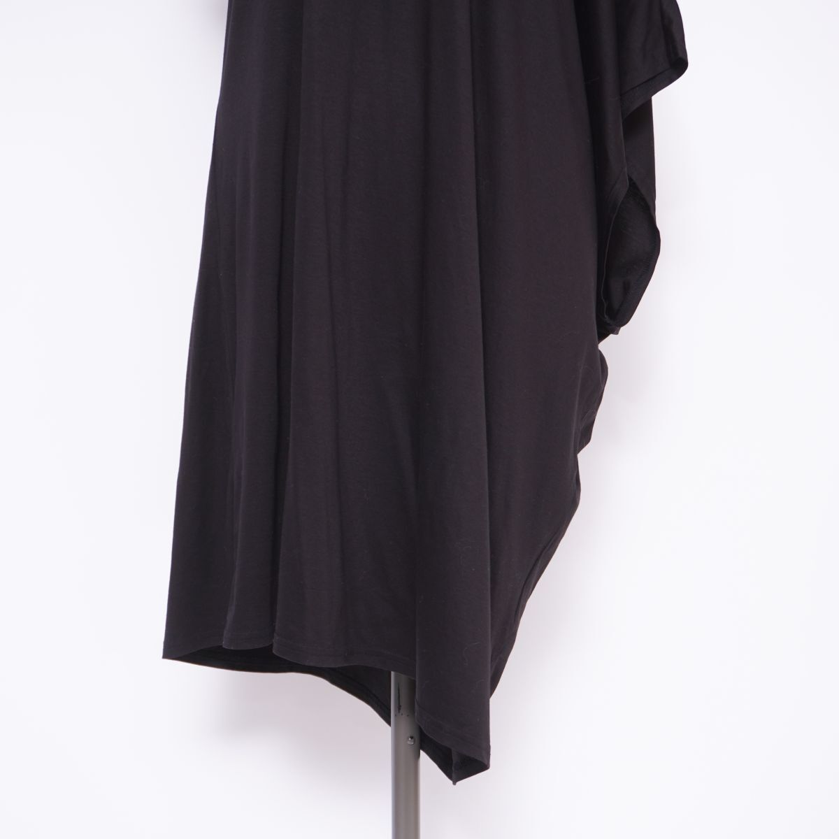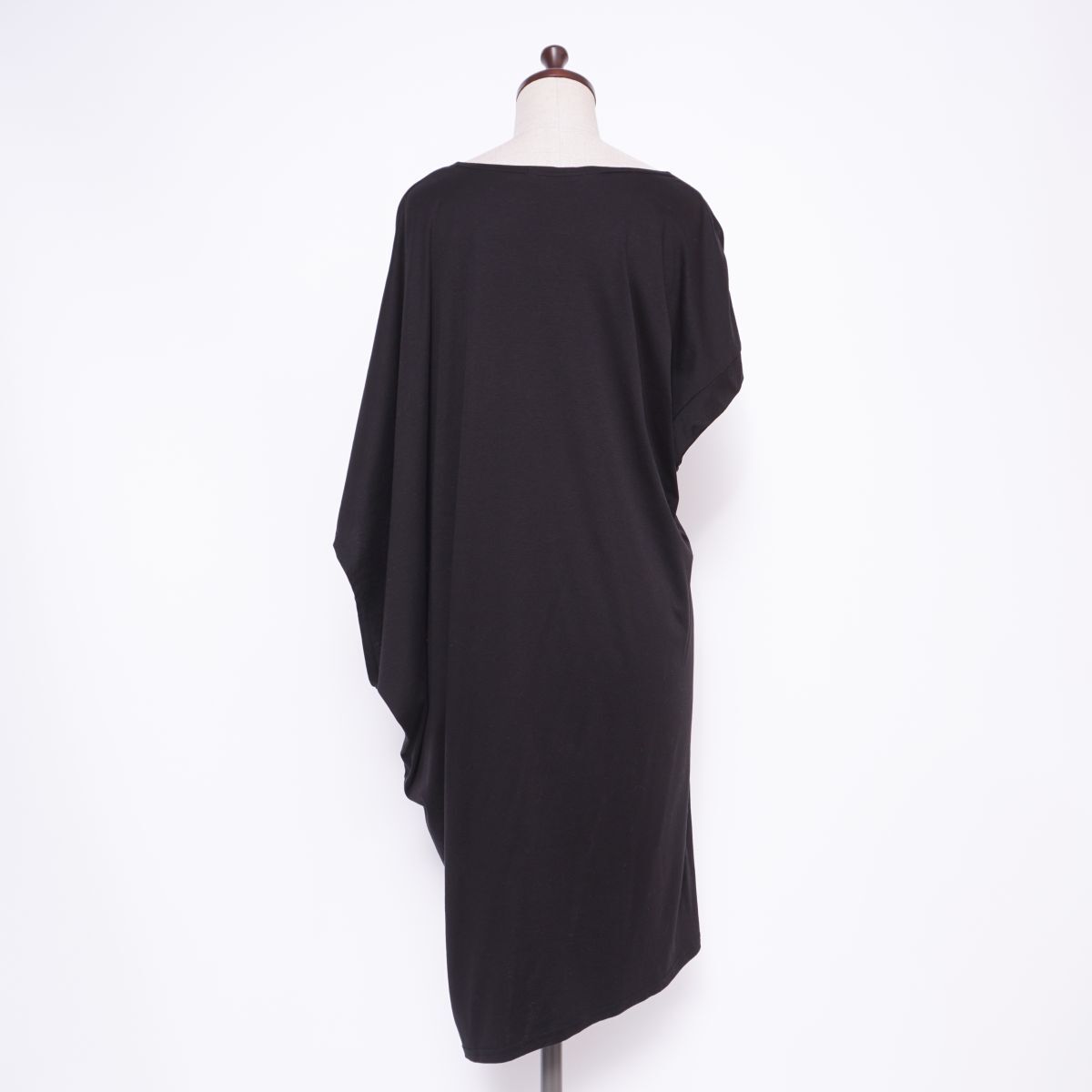 美品 LIMI feu リミフゥ Uネックサイドドレープアシンメトリーワンピース ミモレ丈 レディース ブラック 黒 サイズF*ED936