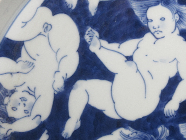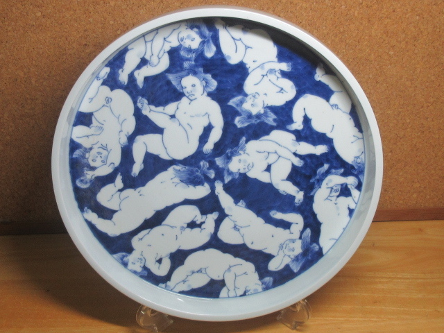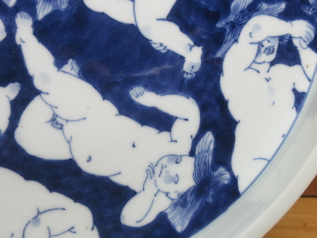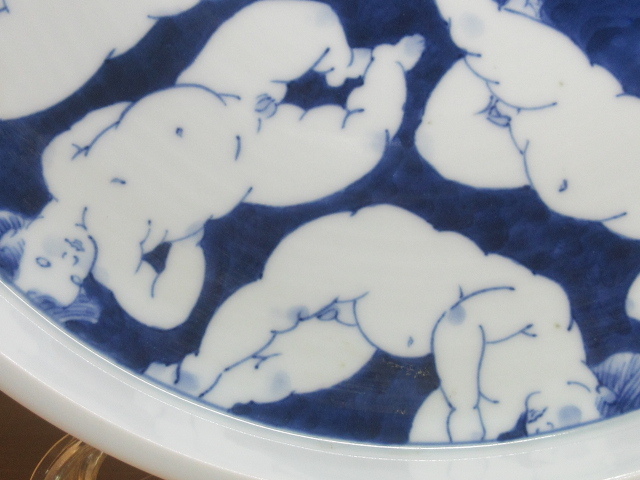 ~ ★長嶋豊彦「裸童群像」染付皿★豆州豊窯・菓子器・菓子皿★焼き物・完品★骨董・レア・ビンテージ・レトロ・アンティーク・美品★ ~