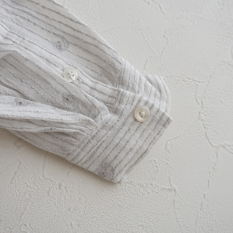 mina perhonenのswing flower コットン刺繍ブラウスです。カラーはホワイトでシアー感のある薄手地に、刺繍があしらわれております。フロントボタン開閉で着脱でき、定価(メーカー希望小売価格)41,800円 税込みの商品です。 |