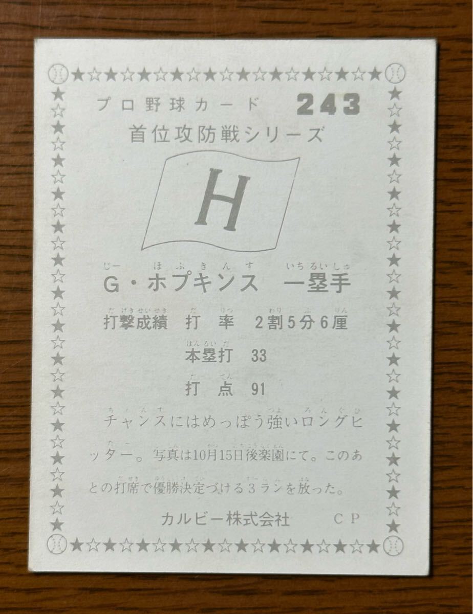 カルビー プロ野球カード ‘75 No.243 首位攻防戦シリーズ G.ホプキンス(広島)