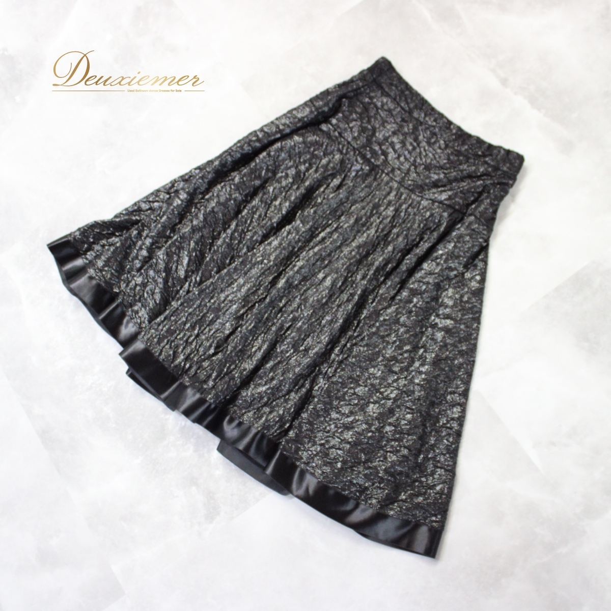 【商品名】社交ダンス衣装 スカート 【サイズ】 平置き実測:総丈約66.5cm、ウエスト約32.5cm~ ※実測の為、多少の誤差はご容赦願います 【仕様】 ・ウエストゴム仕様 ・伸縮性有り ------------------------------------ 【ポイント】 ▽leirena レイリーナ ▽洗練されたアーバンブラック ▽繊細にきらめく上品な生地感 ------------------------------------ 【撮影時使用トルソー】 種 類:女性用トルソー9号 (一般的に使用されるサイズです) サイズ:肩幅約37cm、バスト約88cm、ウエスト約66cm、ヒップ約89cm |