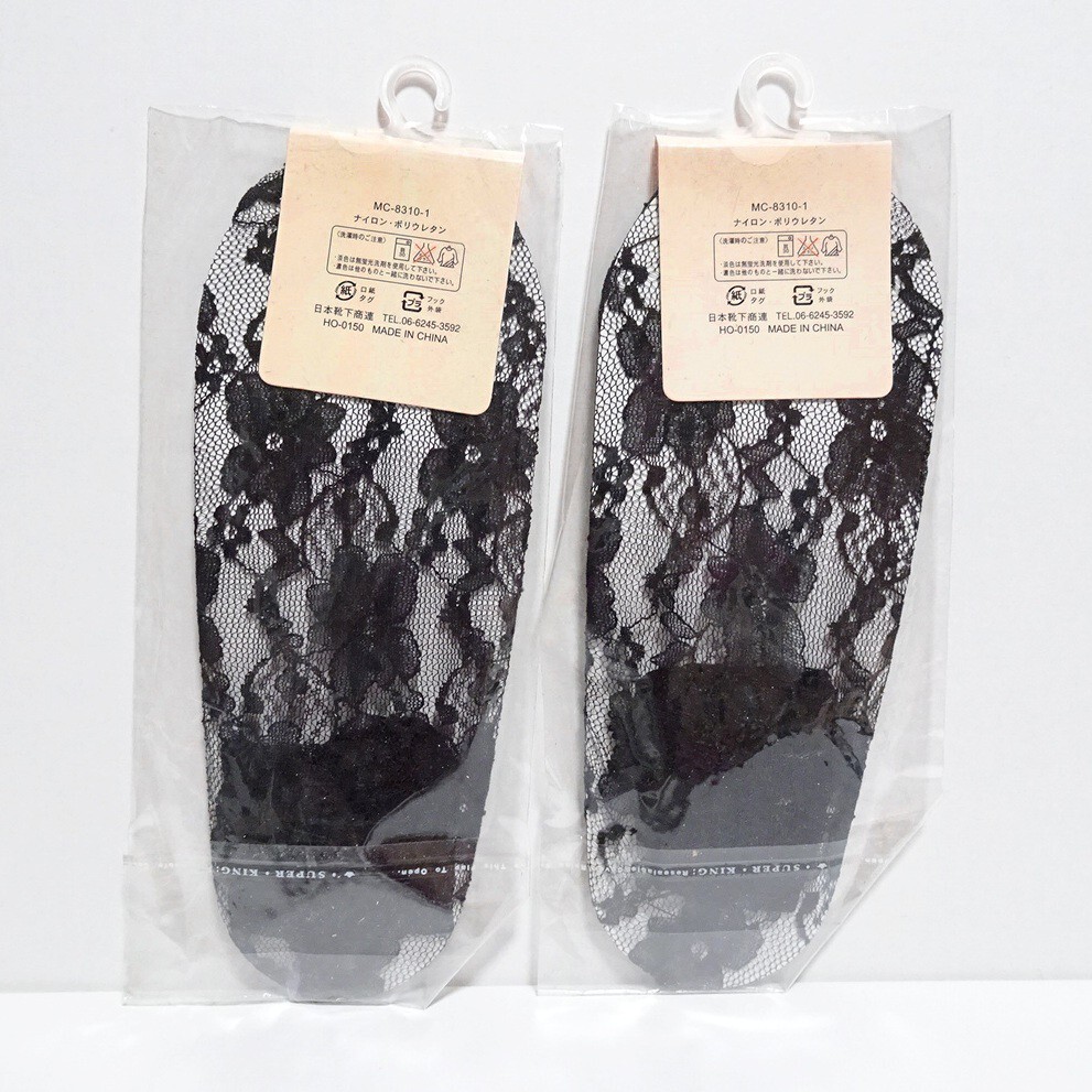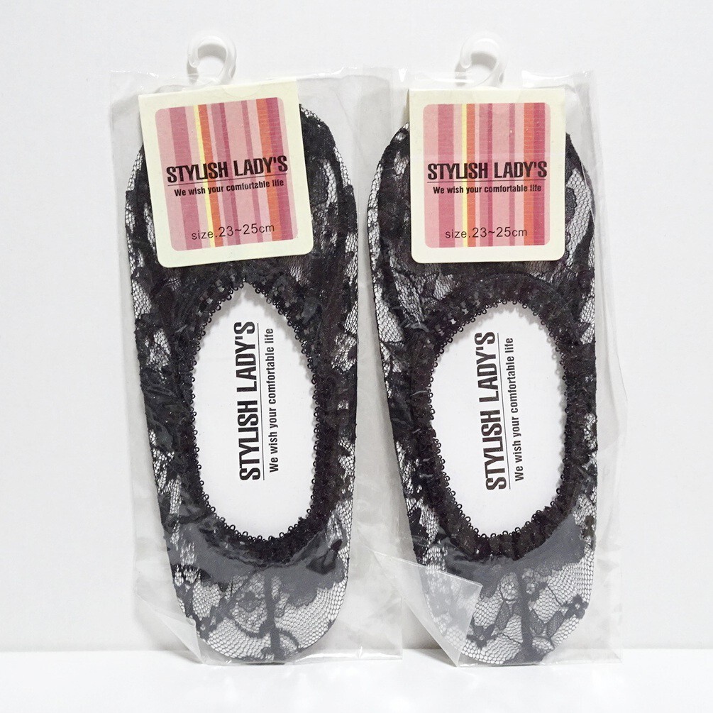 2465 送料無料 未使用2点セット スタイリッシュレディース カバーソックス 23〜25cm ブラック / フットカバー ショートソックス レース