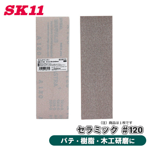 SK11 マジックペーパー セラミック 粒度 120 50PBOX 75×240mm マジックテープ 木工 樹脂 パテ 研ぎ 木工研磨 研削