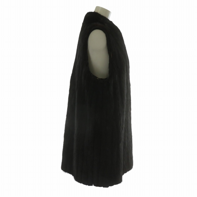 ノーブランド ダークミンク ファー ロング ジレ ベスト アウター 毛皮 11 L 黒 ブラック /XZ ■GY11 レディース