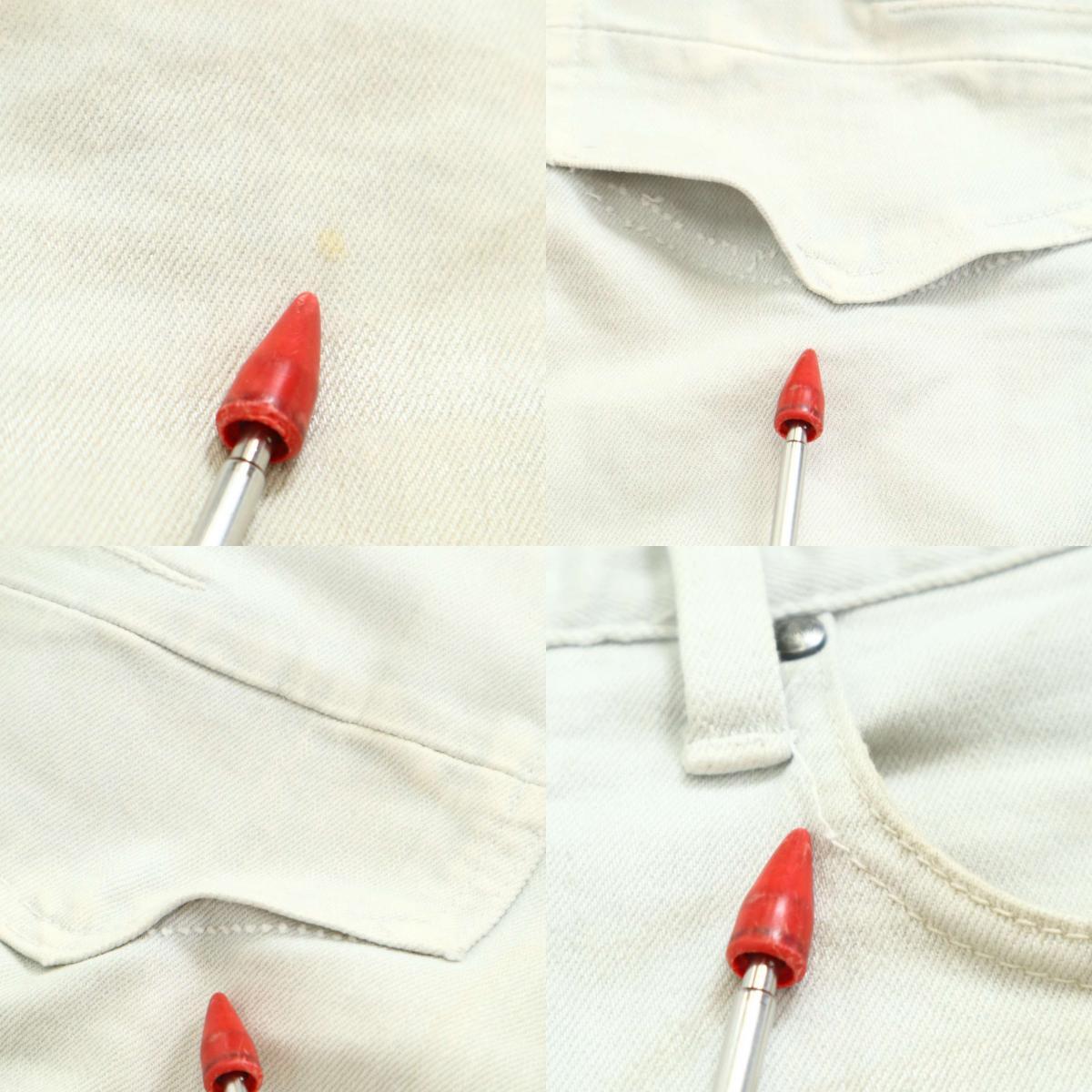 お尻他数カ所に薄い汚れ、お尻両ポケット、前両ポケットにホツレがございます。着用に問題はございません。