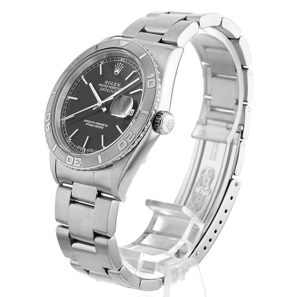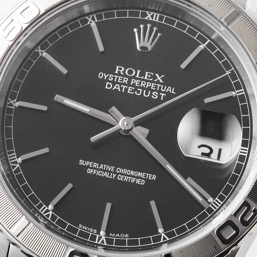 | モデル情報 | 両方向回転ベゼル付きデイトジャストの愛称サンダーバード。その歴史は1956年にアメリカ空軍のアクロバットチーム「サンダーバーズ」隊長のドン・フェリス大佐の引退を記念して特別発注されたデイトジャストに端を発します。オールステンレススティールではなく、ホワイトゴールドとのコンビである点に、さりげない高級感が見え隠れする大人の渋い腕時計です。 |