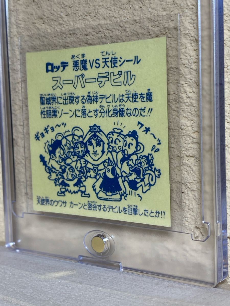 旧ビックリマンシールのヘッド、スーパーデビル偽神の懸賞版裏台紙黄色の銀プリズムシールになります。希少性やレア度が高いシールで、紛れのない年代物の正規品です。手に入れた後は大切に取り扱い、収納ファイルにて暗所なところで保管しておりました。商品レベルは写真画像の通りになります。主観ですが見た限り全体的に綺麗な状態であったため、極美品と位置付けました。長年の時がたっているため、経年変化によるものや見落としているキズや汚れ、写真に映りにくい箇所等が見つかった場合はご了承頂きたいと存じます。状態などは写真をよくご確認の上、画像にてご判断下さい。是非、ご理解のある方に購入して頂きたく、今回出品致します。