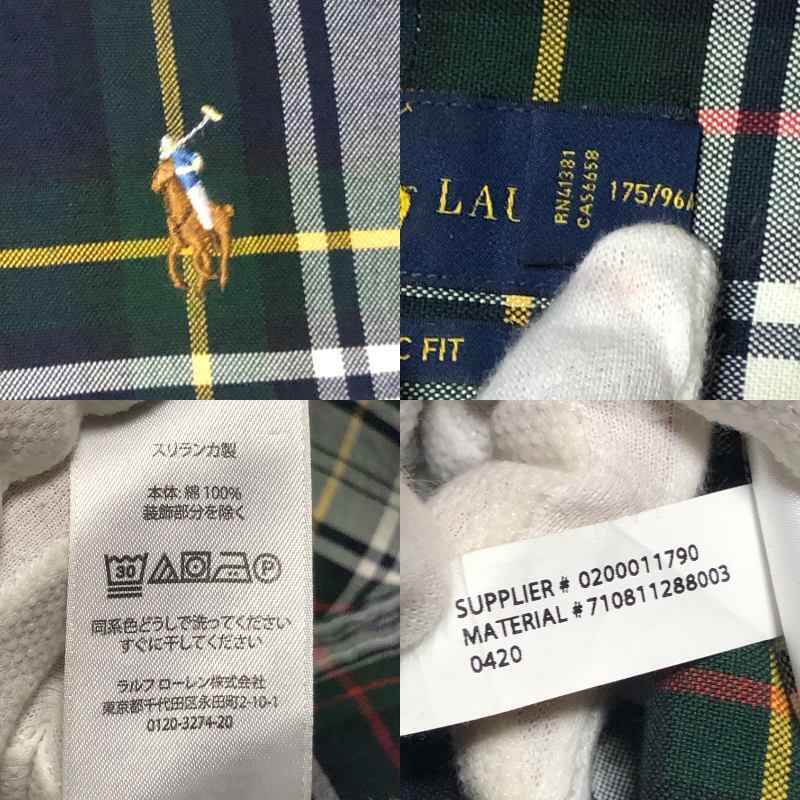 RALPH LAUREN ラルフローレン 長袖シャツ ボタンダウン ポニー刺繍 チェック柄 近年タグ 20年製 クラシックフィット Mサイズ