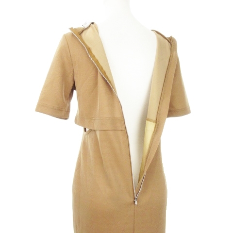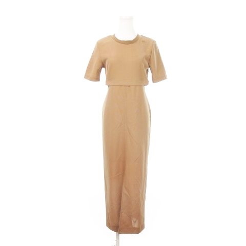 ダブルスタンダードクロージング ESSENTIAL 24ss ロングワンピース フェイクセパレート 半袖 ロゴ刺繍 カットオフ スリット 36 S 茶