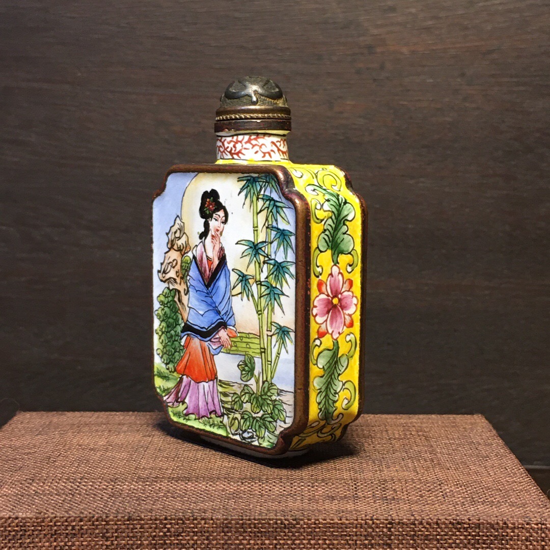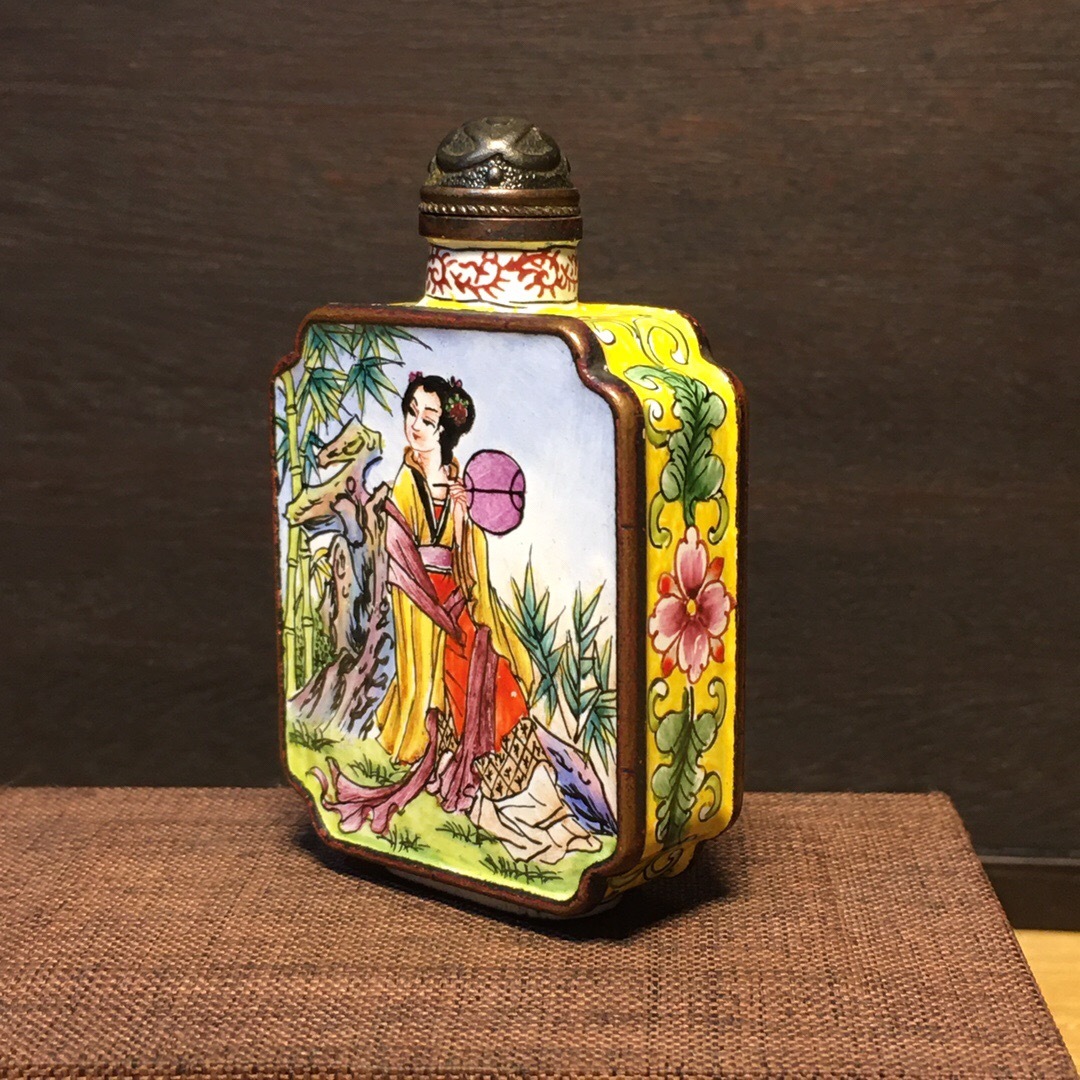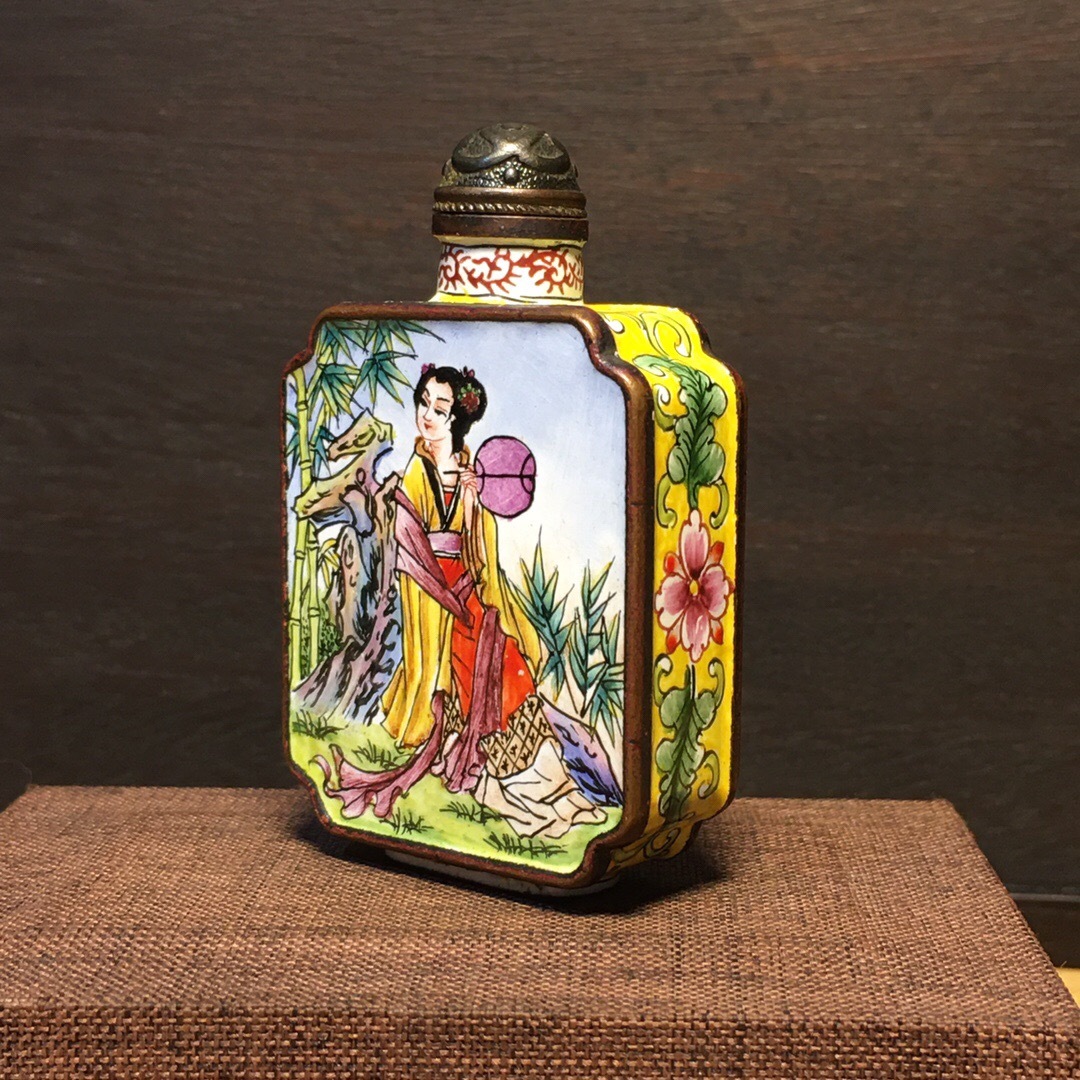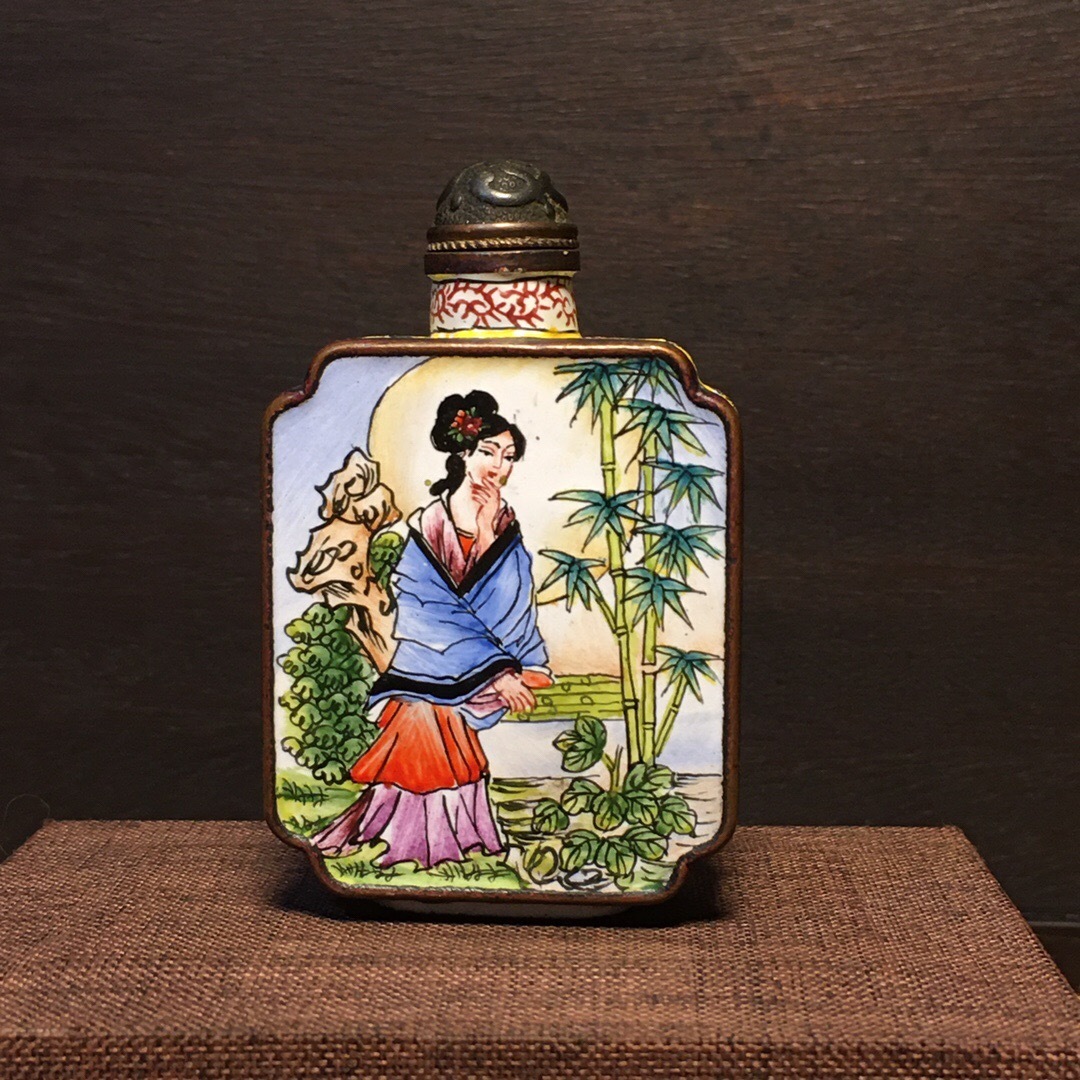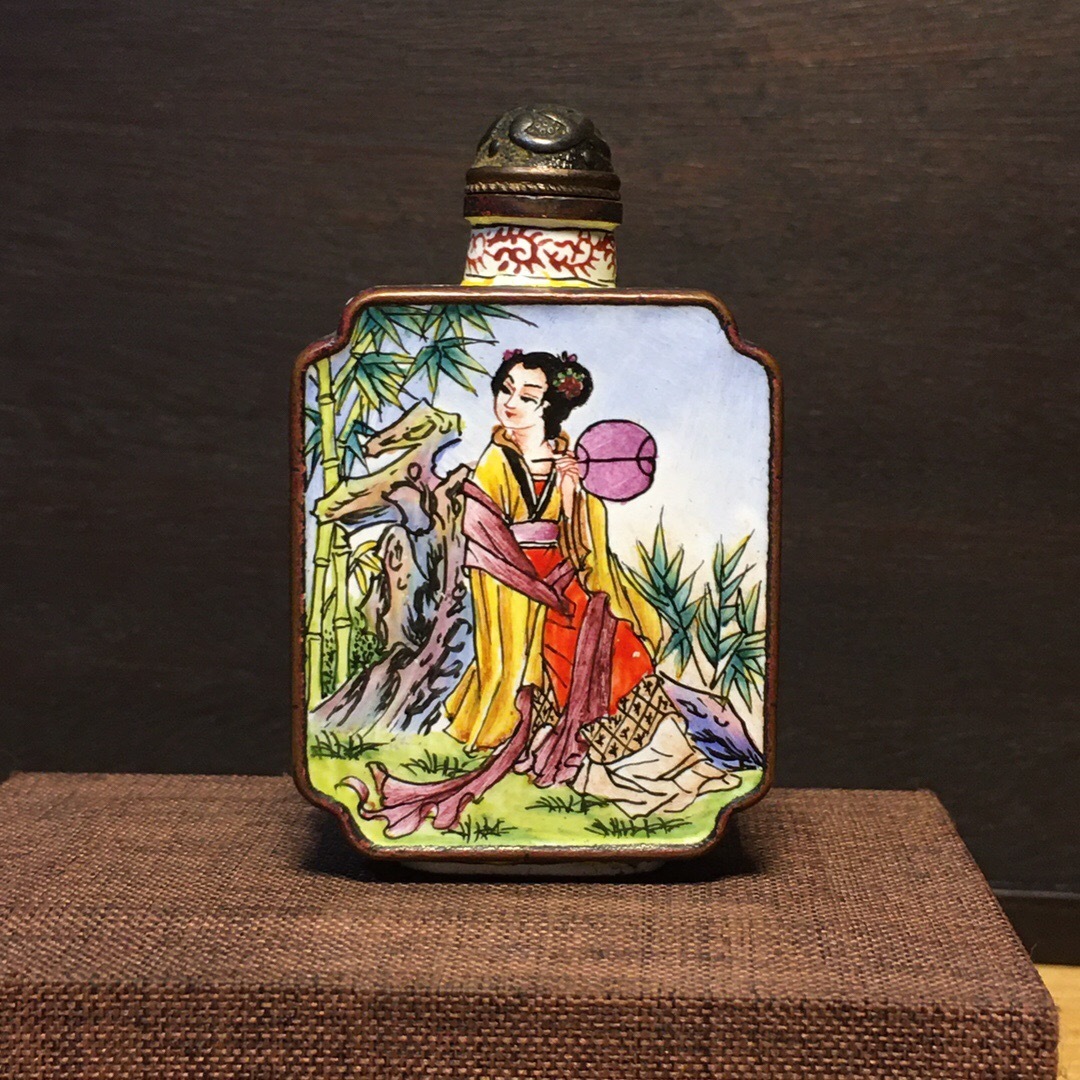 『清・銅製・景泰藍・琺瑯彩・仕女紋・鼻煙壺・根付・裝身具』極細工 置物 古賞物 中国古玩 中国古美術