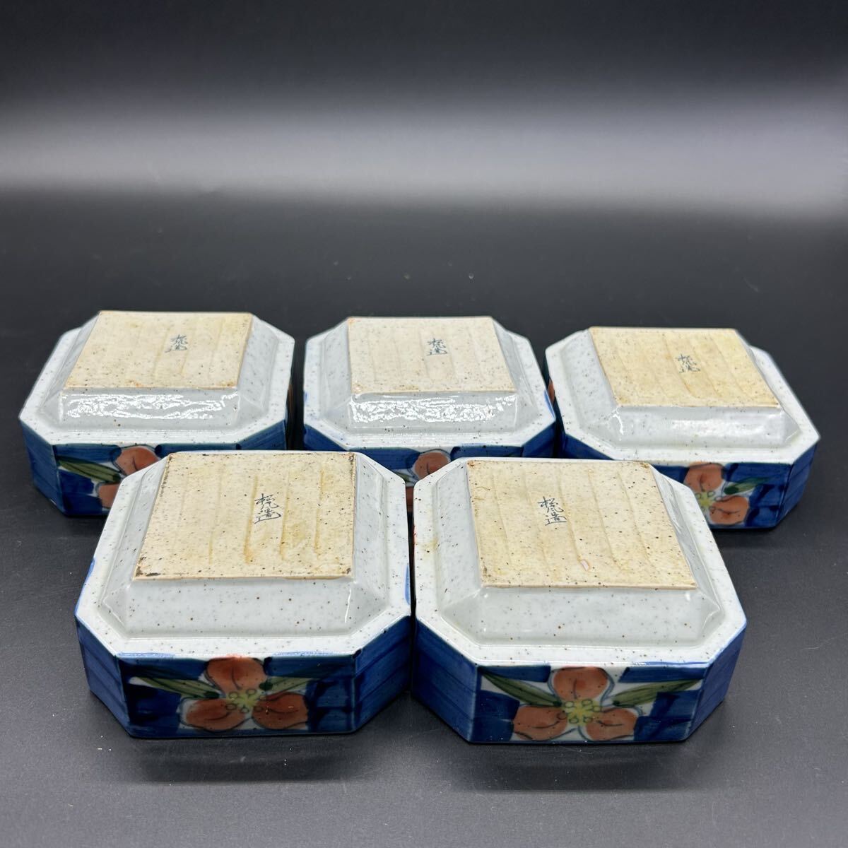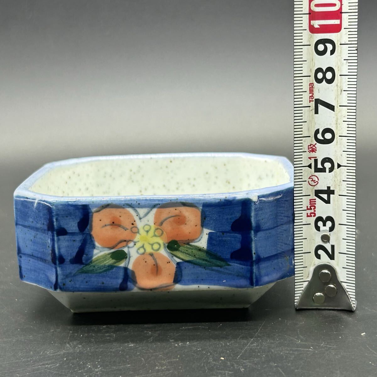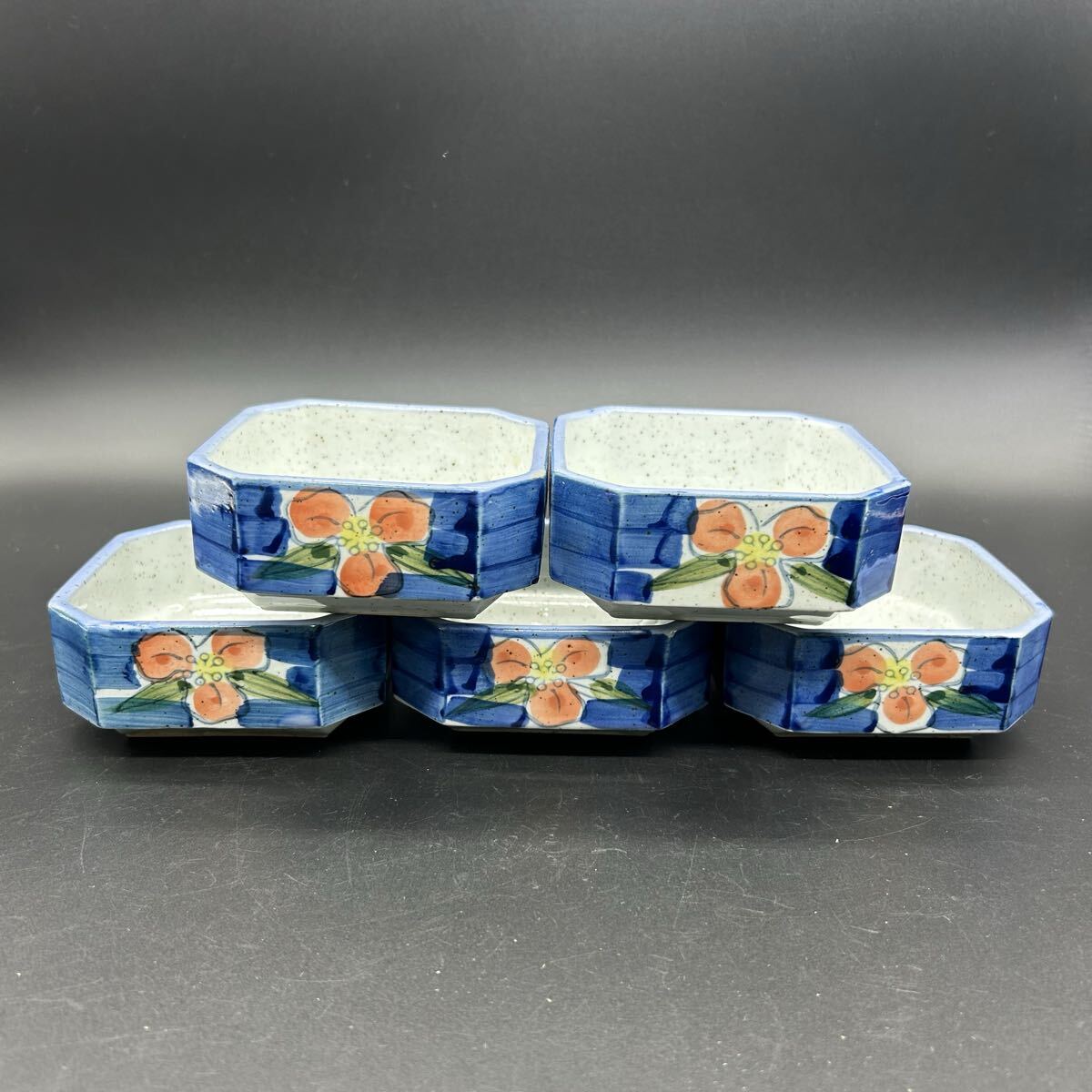 有田焼 松風造 京赤絵 青色 花柄 八角形器 小鉢 陶器 エ22